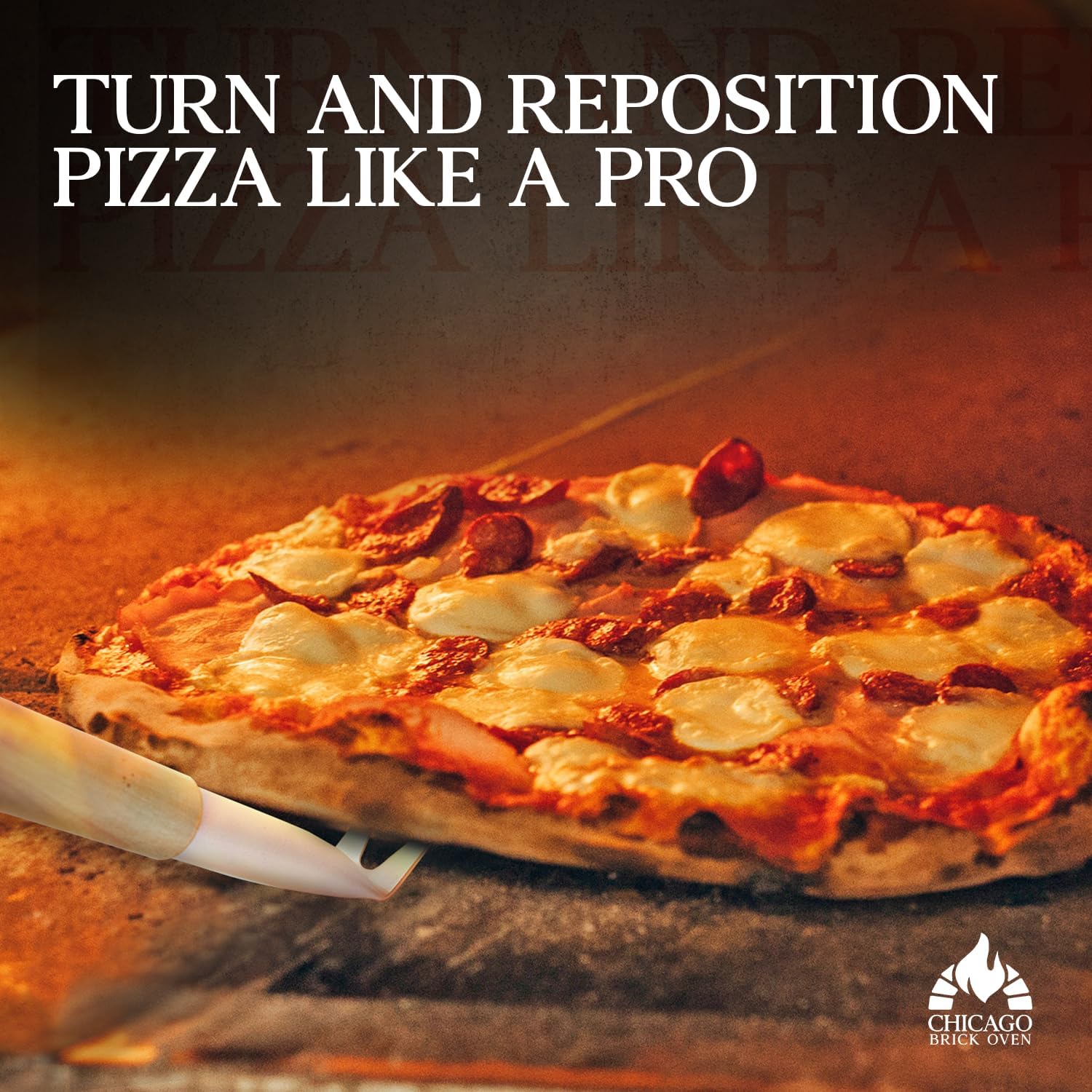 - SAFETY: Turning a Pizza in hot oven can be dangerous. Chicago Brick Oven’s Pizza Spinner 2-Pack’s 17.5 Inch length gives you the ability to turn your pizza while maintaining a safe distance away from the heat. Avoid burns on your finger, arms, and hands without sacrificing the perfectly crispy pizza.