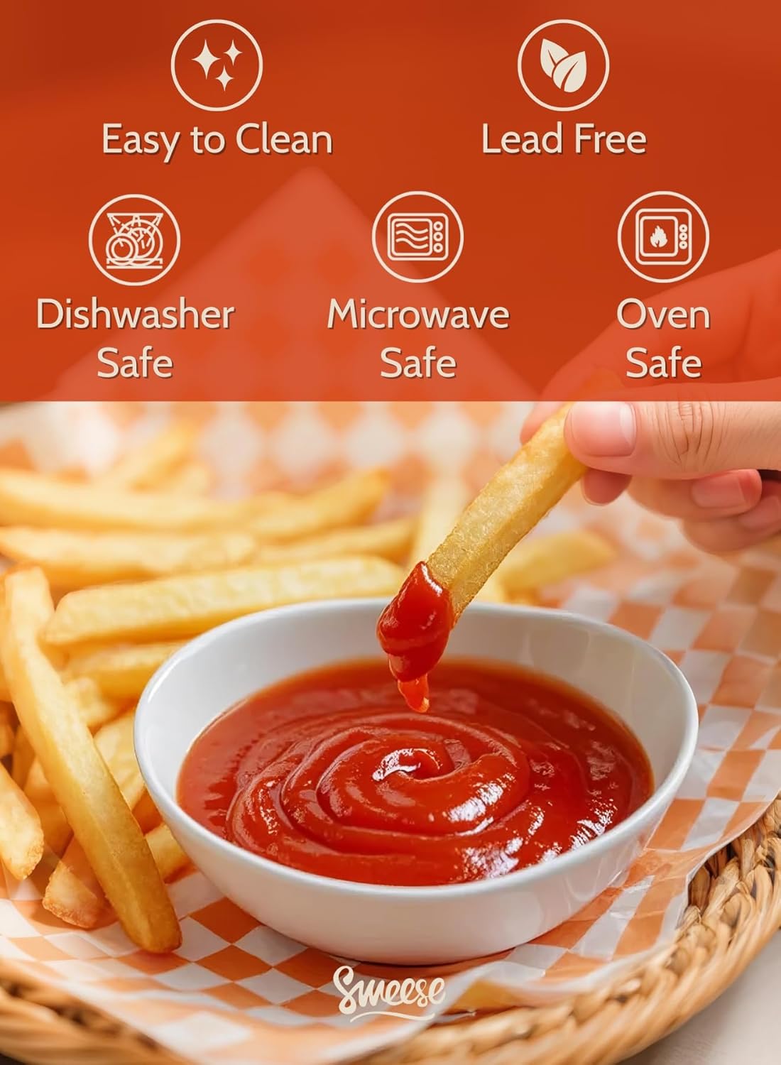 Sweese 4 oz Porcelain Bowls Set of 6 - White, Small Dipping/Snack/Sauce/Condiment Dish - Microwave, Dishwasher Oven Safe
