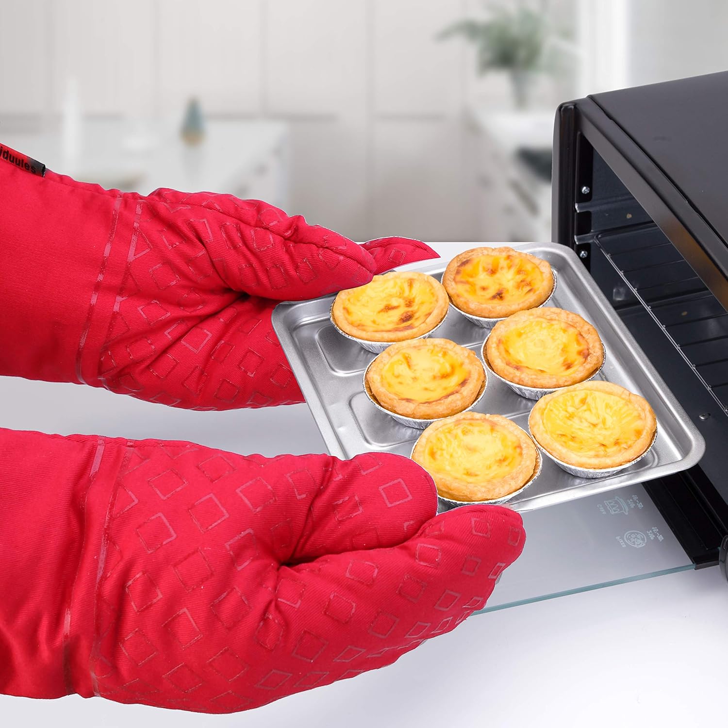 Set of 4 Oven Mitts and Pot Holders, 482 F Heat Resistant Hot Plate Moving Non-Slip Gloves for BBQ, Grill, Baking, Cooking, Oven, Microwave (Red)