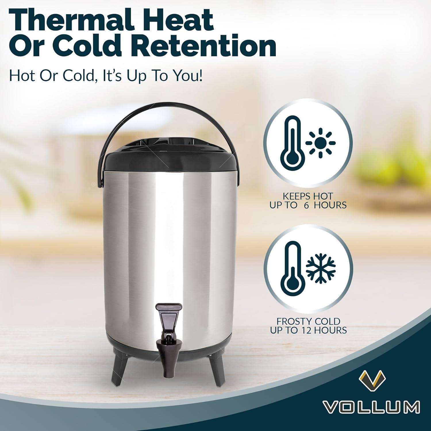 Stainless Steel Insulated Beverage Dispenser – Insulated Thermal Hot and Cold Coffee Carafe – 8 Liter Drink Dispenser with Spigot for Hot Water, Tea & Coffee, Cold Milk, Juice & More BLACK