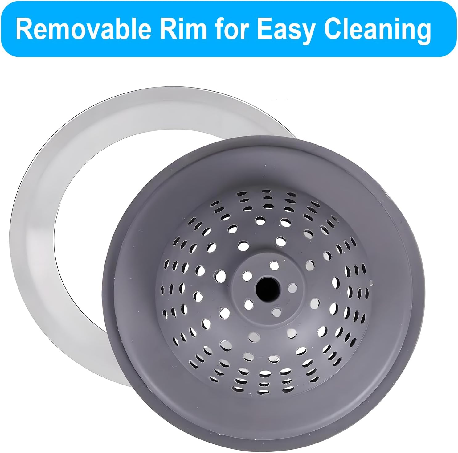 2 Pack Kitchen Sink Drain Strainer Silicone Stainless, Drain Protector,Prevent Clogging, Large Wide Rim 4.5 inch Diameter, Tools Home Improvement (Gray)