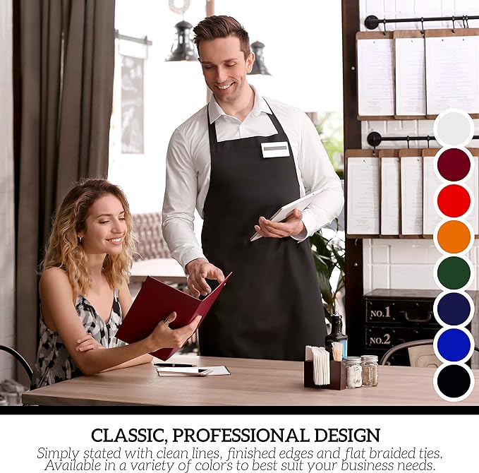 - Multiple Colors And Bulk Packs – These aprons for men and women come in a range of colors to match your brand or space. Available in packs of 3, 12, or 120, they’re ideal for individuals, teams, or businesses looking for consistency.