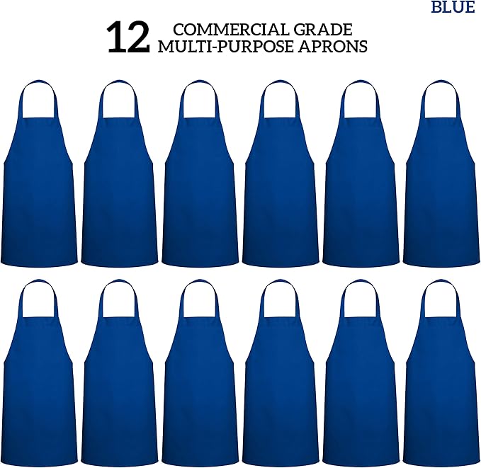 GREEN LIFESTYLE 12 Pack Professional Chef Apron – Grilling Aprons for Men, Waterproof Cooking Apron for BBQ, Work or Restaurant Use, Kitchen Aprons for Women – Royal Blue, No Pockets