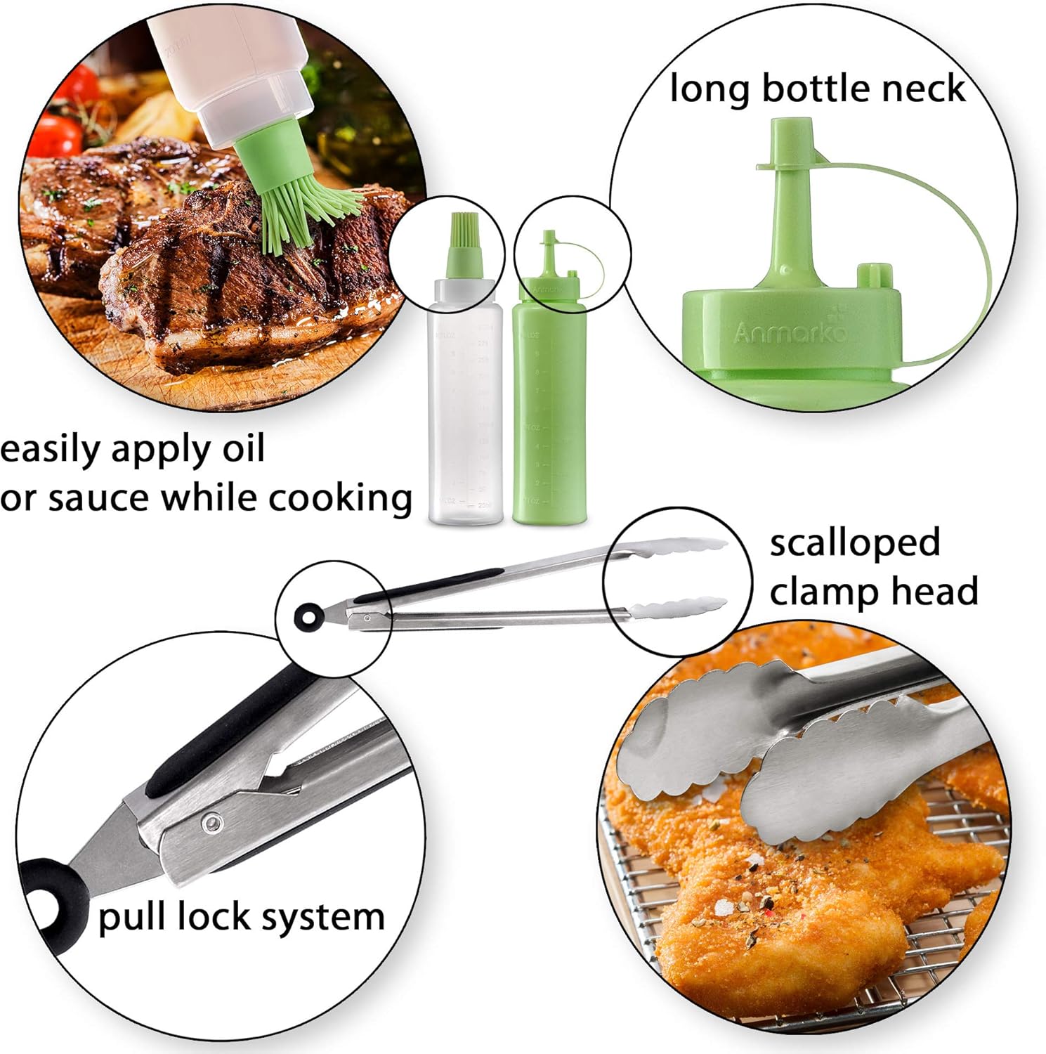 - Color : Wooden handle set + tongs and bottles
