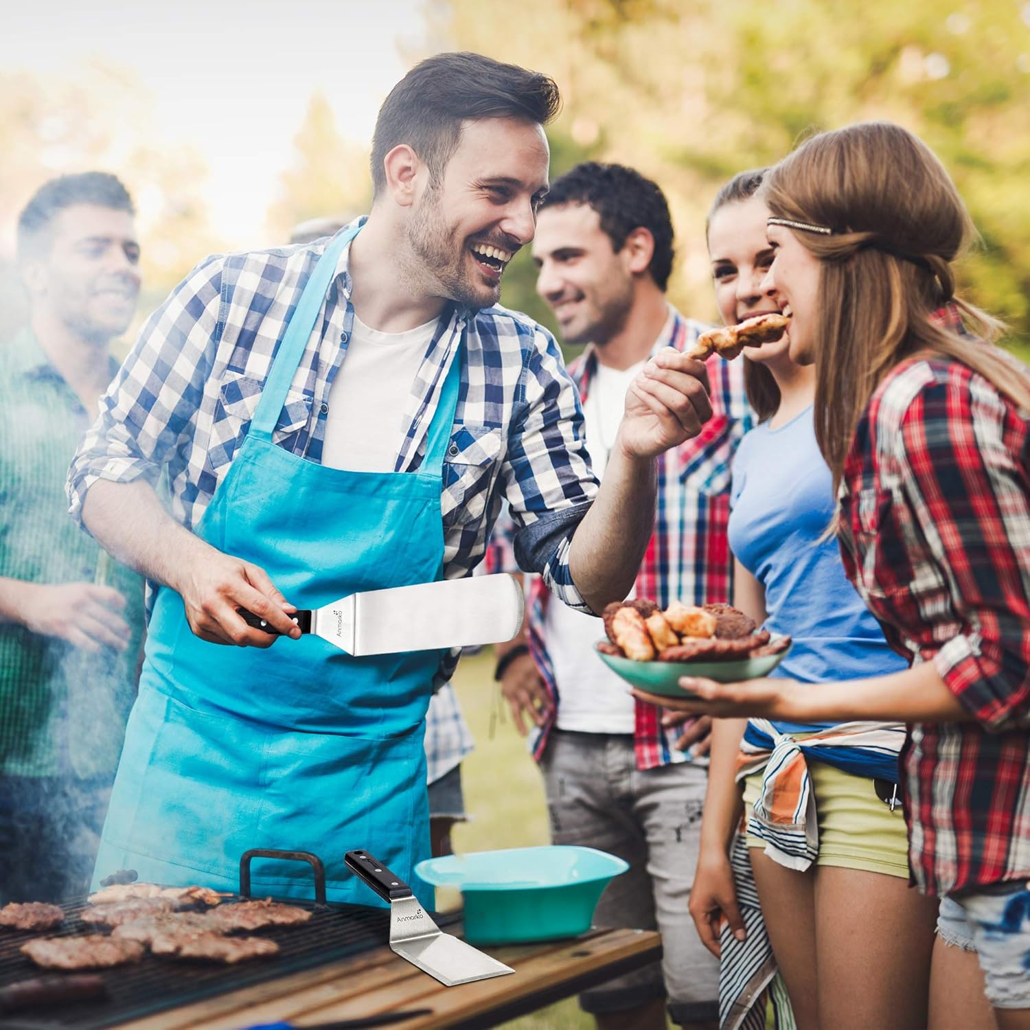 - Pancake flipper and griddle turner oversized spatula - perfect for bbq grill reversible griddle as well as for cast iron outdoor griddle or flat top cooking . Great as a gift.