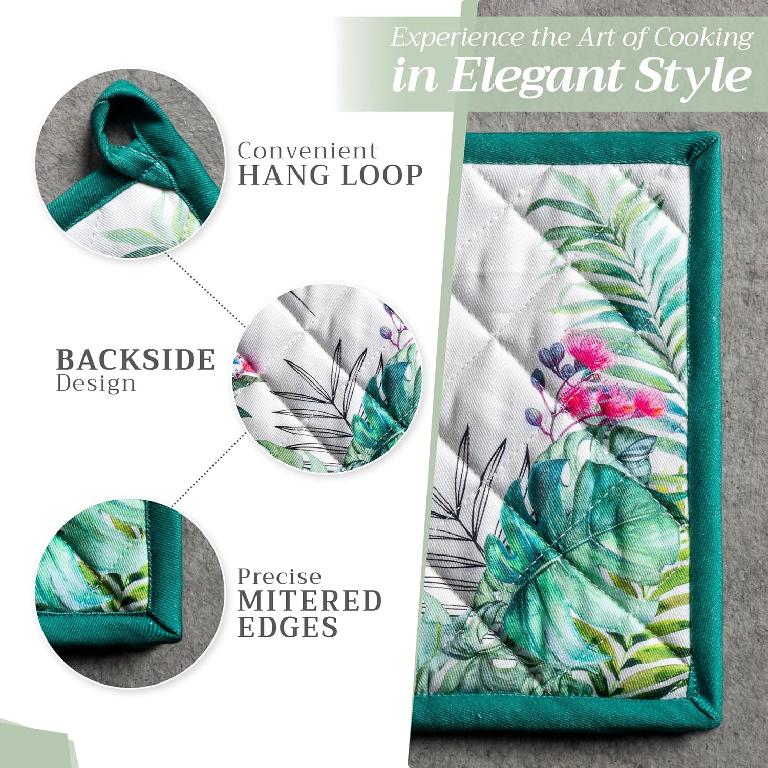 - Premium Quality: Crafted from quilted 100% cotton, this heat resistant oven mitt and pot holder set offers comfort, flexibility, and protection from hot cookware. Ideal cotton oven mitts for daily kitchen use and cooking safety