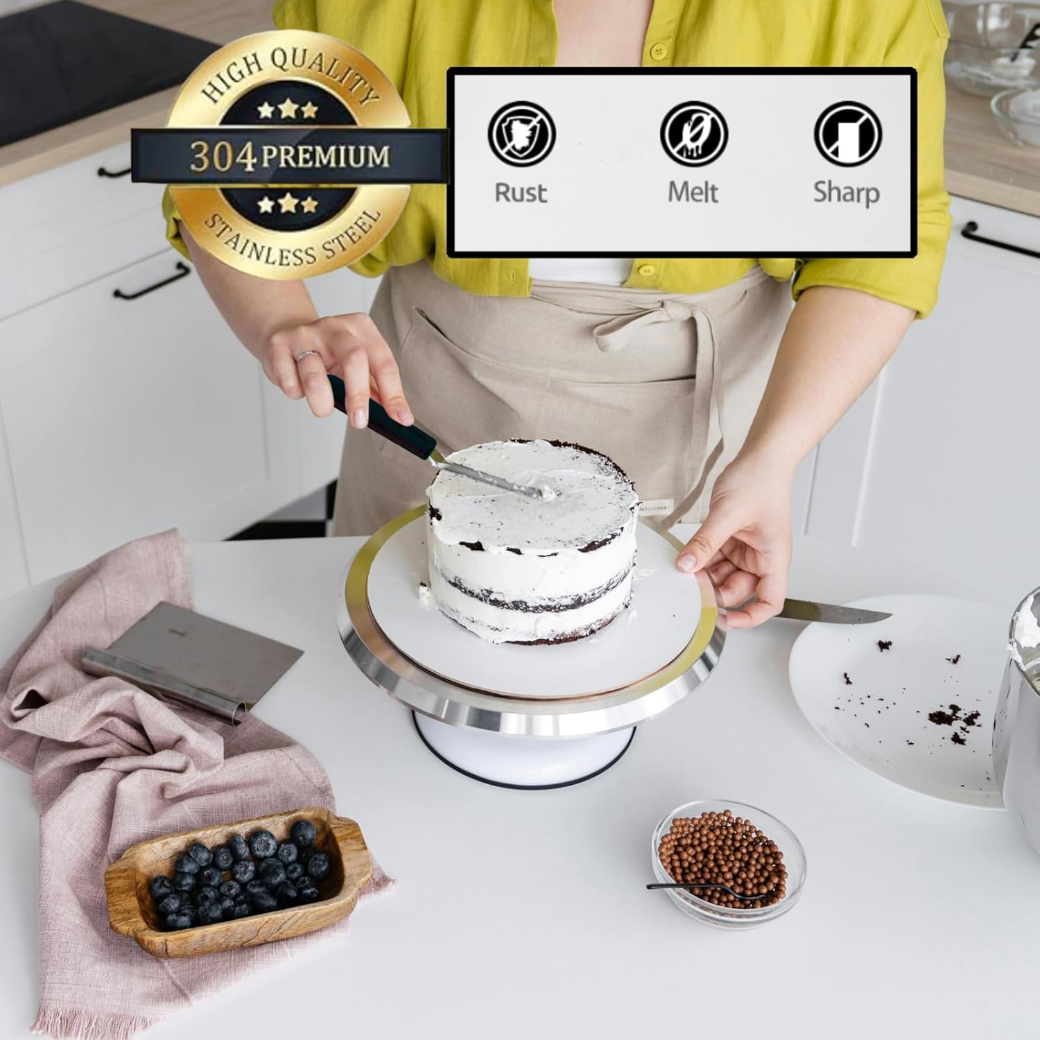 - 【High quality Stainless Steel】—The icing spatula kit is made of 100% food-grade stainless steel, sturdy and durable, not easy to bend and rust to have direct touch with food, ease of use, safety and non-toxic, has no smell.