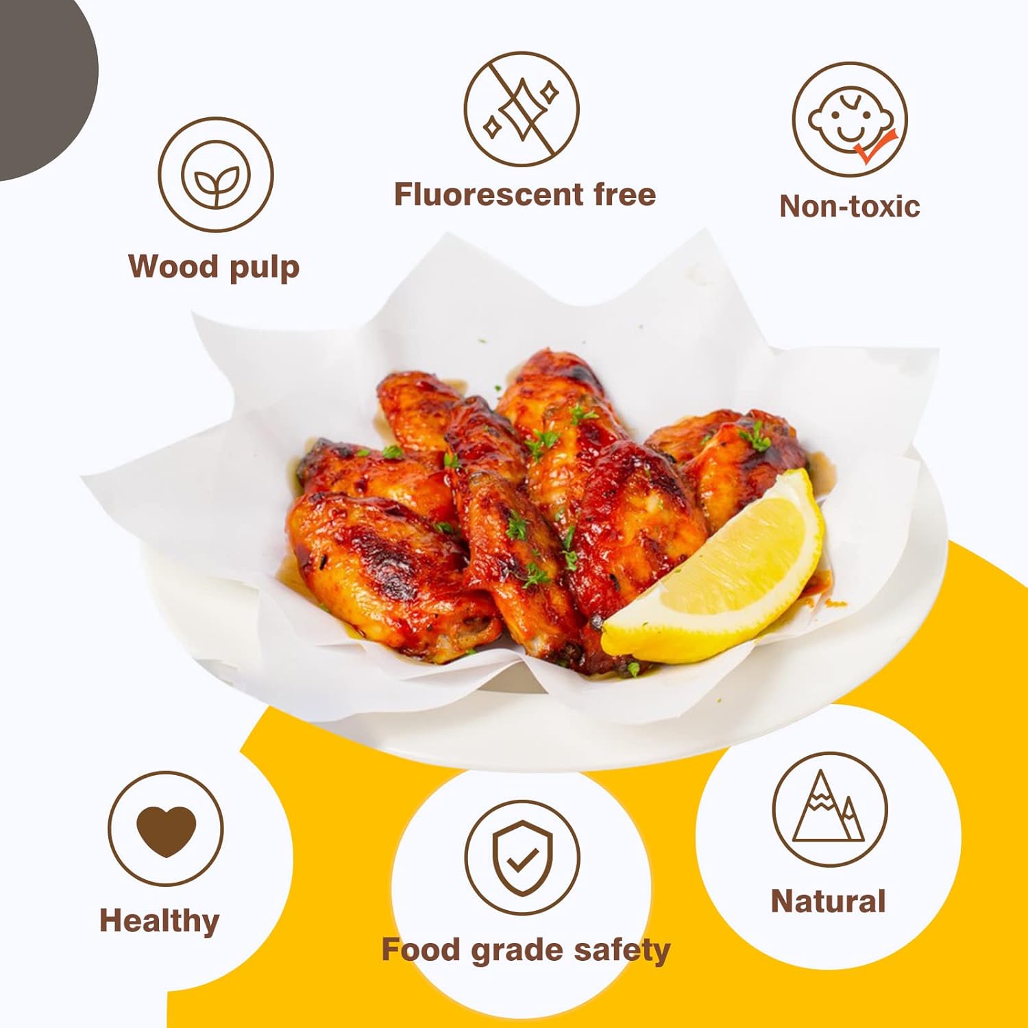 - Natural & Healthy - Unbleached parchment paper is made from 100% pure wood pulp, and totally fluorescent free. Compared to recycled paper, kosher certificated, non-toxic, two-sided silicone coating bring you a healthy and safe diet.