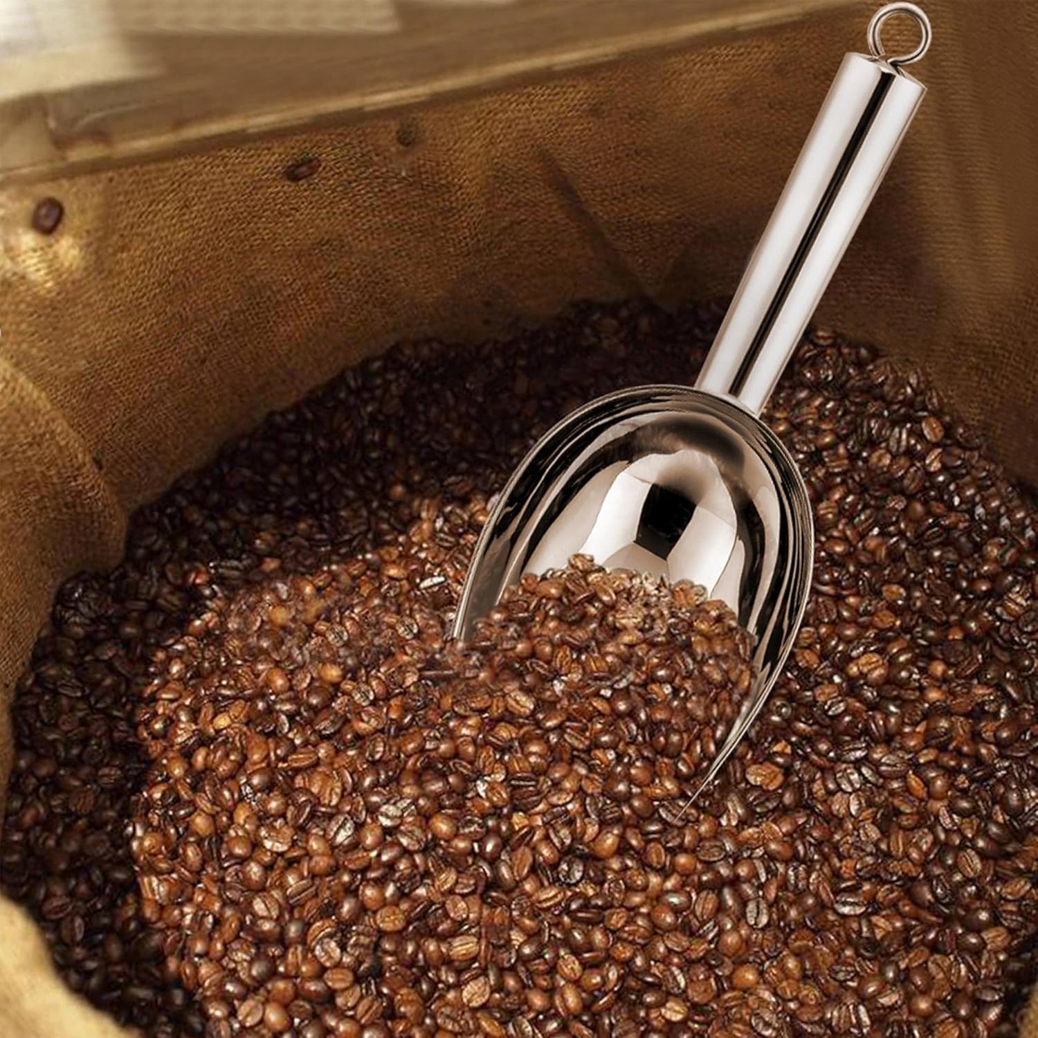 - Versatile: 8 oz capacity metal scoop, Overall length 9.3 inch, Bowl Measured 5.8’’ L x 3.5’’ W x 1.7’’ H, Ideal for scooping ice cubes, candy, coffee beans, flour, Also could be used as dog cat food scoop, Meet all your requirements