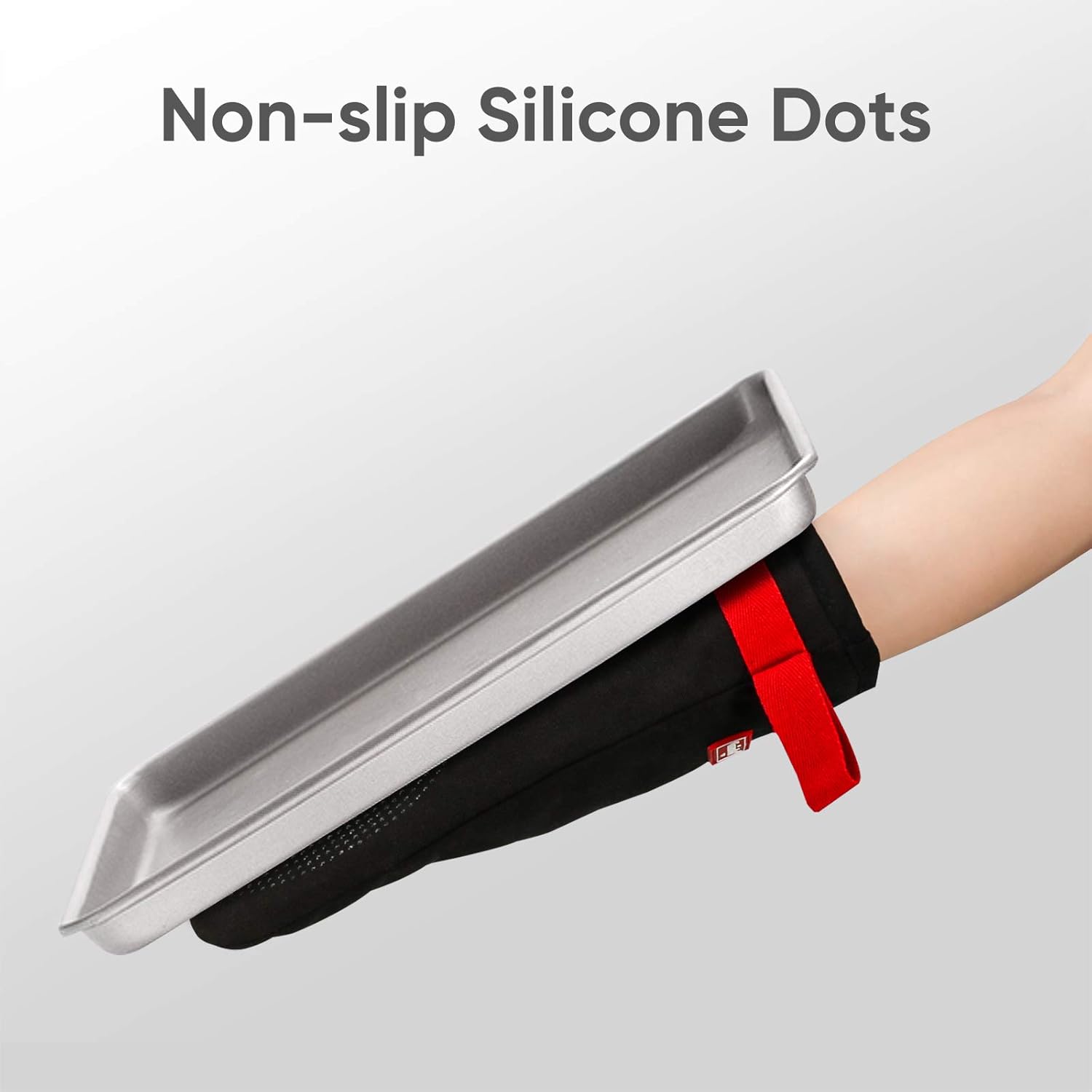 - Magnetic Oven Mitt: These black oven mitts come with a built-in magnet at the top, allowing you to easily attach them to your refrigerator door or any other magnetic surface. No more searching for your mitts when you need them most