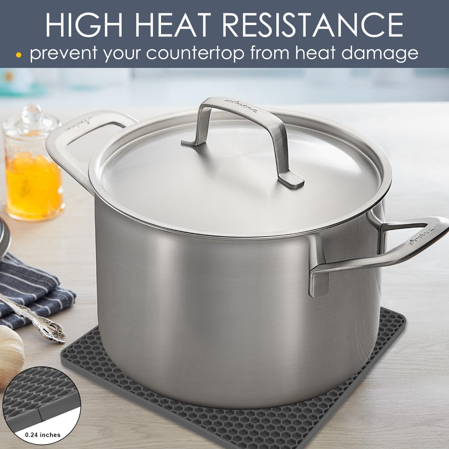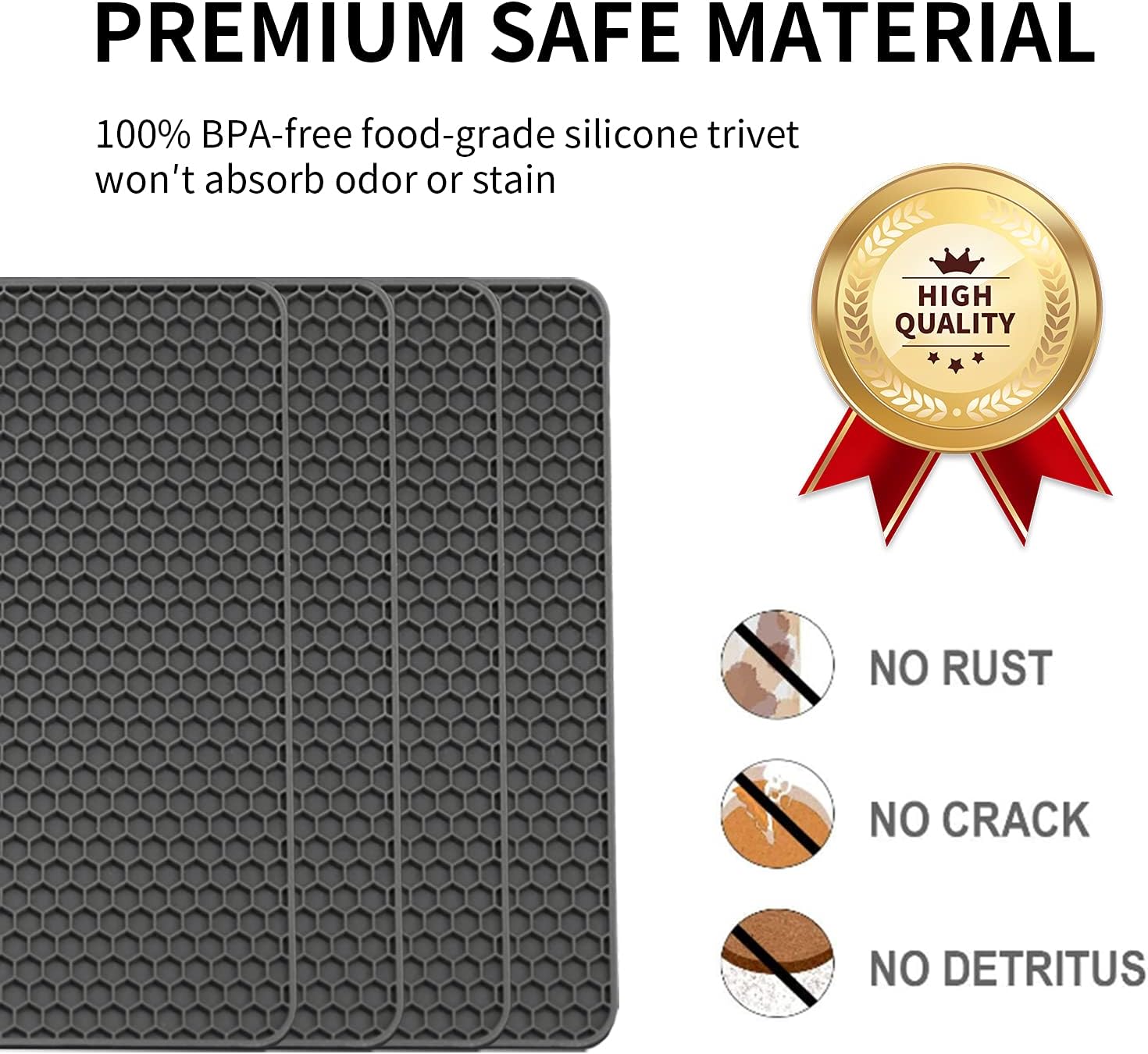 Silicone Trivets for Hot Pots and Pans, Multi-Purpose Trivet Mat for Hot Dishes Set of 4, Heat Resistant Durable Flexible Silicone Pot Mat for Countertop, Easy to Wash and Dry, Dark Gray, Square