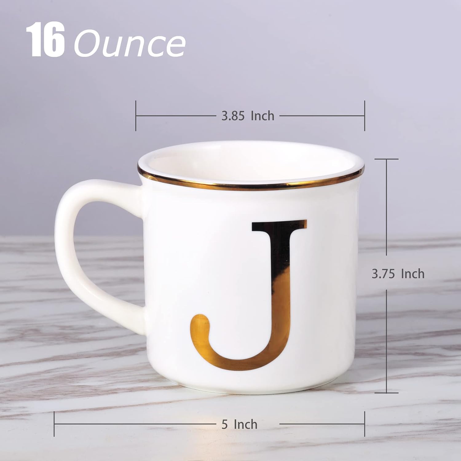Miicol Ceramic Coffee Mug 16 oz, Monogram Coffee Cup, Golden Initial Tea Mug, Personalized Tea Cup, Unique Gift, Large Mug for Home, Office, Letter J