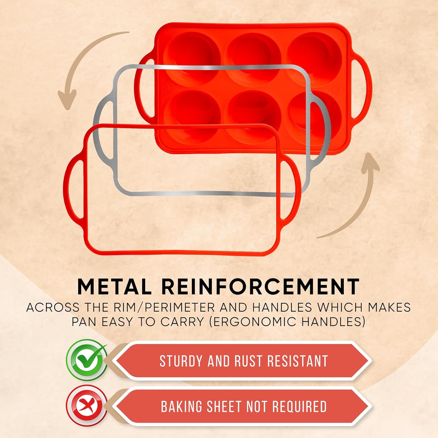 - Sturdy & Spill-Proof – Reinforced Rim on Every Cup: The Bake Boss silicone jumbo muffin pan features a built-in metal frame that keeps your muffin pan silicone stable—no bending, no spills, just smooth oven transfers.