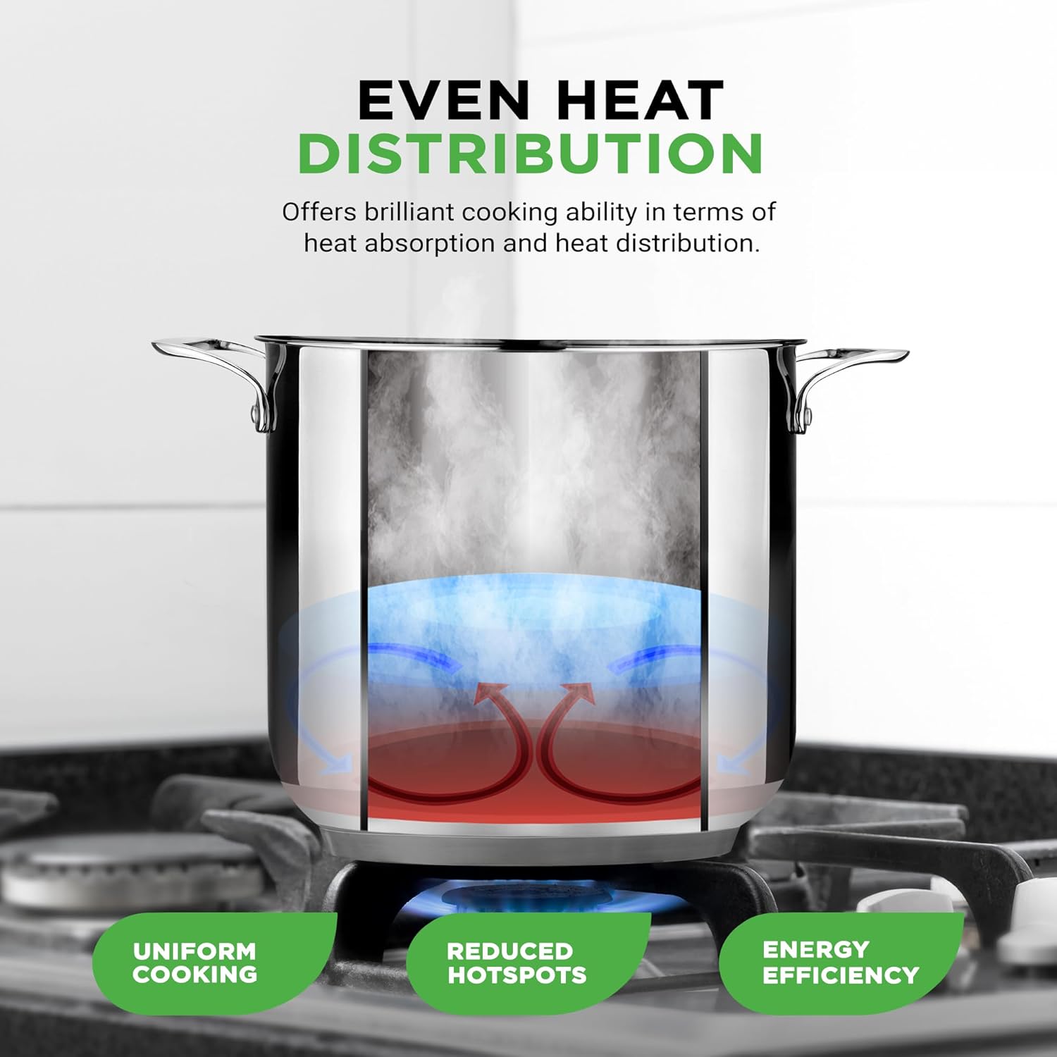 - INDUCTION READY: The heavy duty stainless steel stock pot is designed for safe use in electric, gas, induction, ceramic, hot plate & halogen cook tops. Though dishwasher safe, hand washing is highly recommended to preserve the stainless steel shine