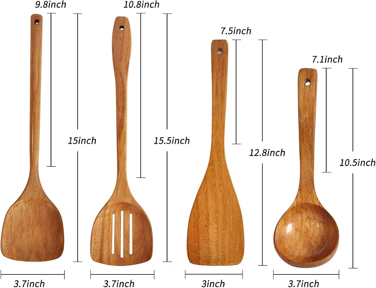 - ✔ Large Comfortable Handle: Wood Spatula /Slotted Turner/Ladle/Frying spatula for stirring, mixing, dividing, tasting, turning, and serving of food,will not scratch surfaces,safe for use on nonstick cookware.