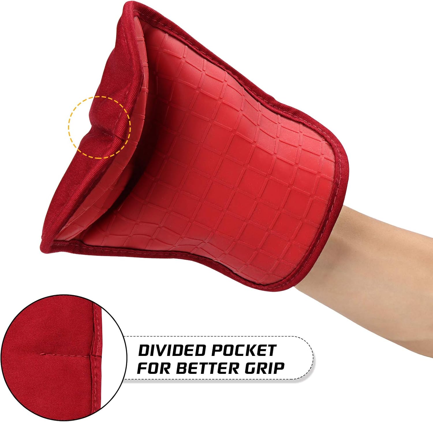 - Improved Control with Non-Slip Grip – We designed our pot holders and oven mitts with a split or divided pocket at the fingertips and a non-slip silicone pattern to give you better flexibility and control when picking up or moving kitchen items.