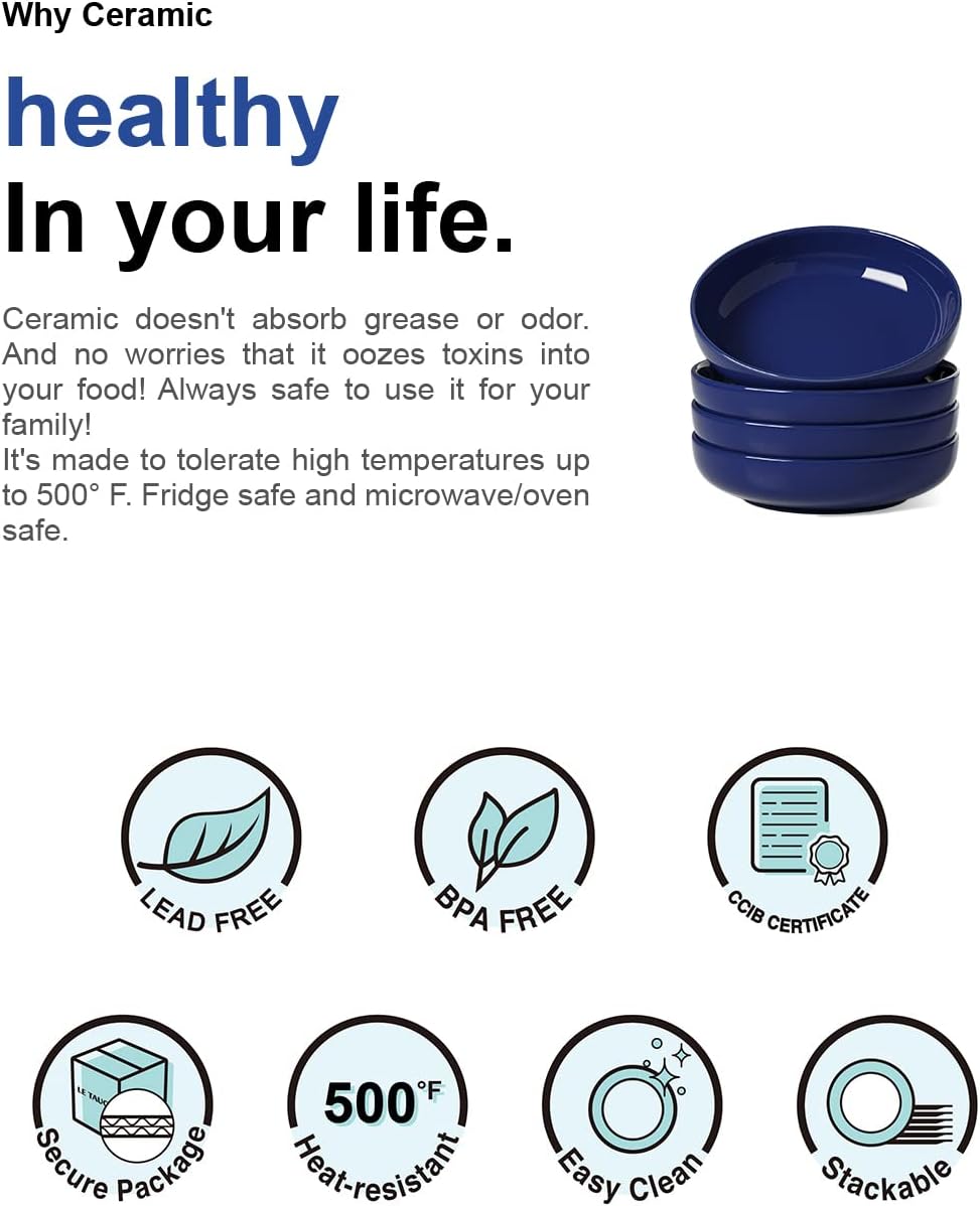 - Good Size:8.5’’ Dia, awesome depth 2.4’’ H, every kitchen should have one. These LE TAUCI 45 ounce shallow bowls are suitable for pasta, soup, dessert, ice cream, rice, beans and so on. You would find you could use them for much more than pasta. High Edge, greater for serving any meal that has sauce in it, will not spill out like a regular plate