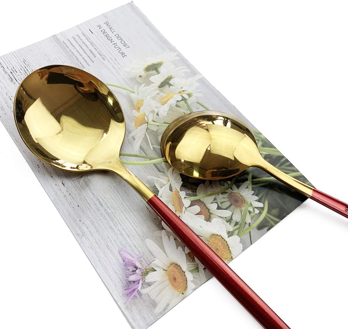 - 【LUXURY & ELEGANT DESIGN】: The elegant rounded curves make them truly timeless, proper gauge thickness and weight to hold comfortably, is ideal for dinner parties, celebrations and wedding.Great gift for Thanksgiving/ Christmas Eve/ Christmas/ New Year's Day.Smooth surface makes these silverware set easy to clean,luxury modern design would match well with your existing cutlery and elevate everyday meals into a fine dining experience.