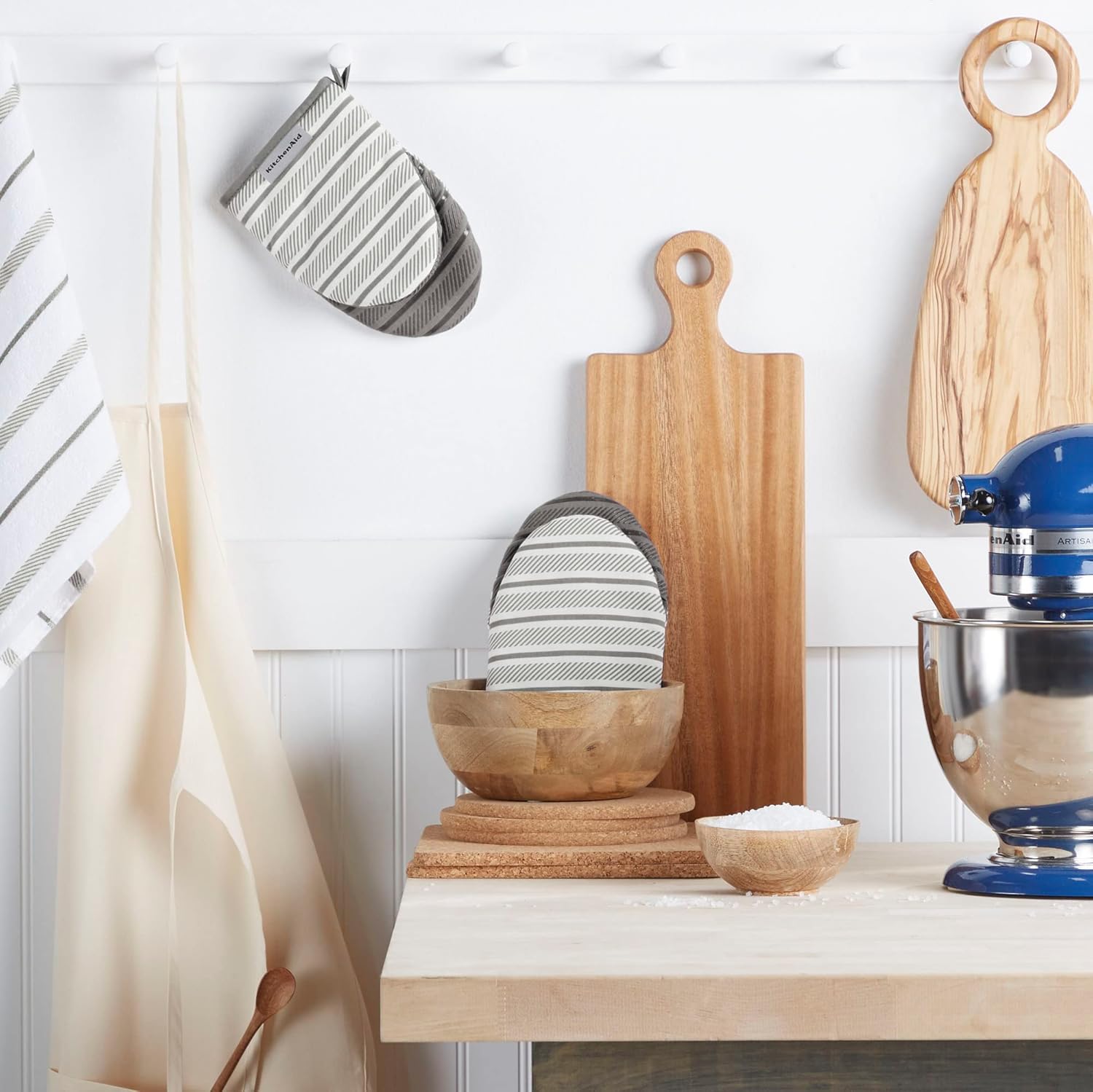 - SET OF TWO – Shield your hands while handling hot cookware. This set includes two (2) Kitchen Aid Albany Mini Mitts, each measuring 5.5" W x 8" L.
