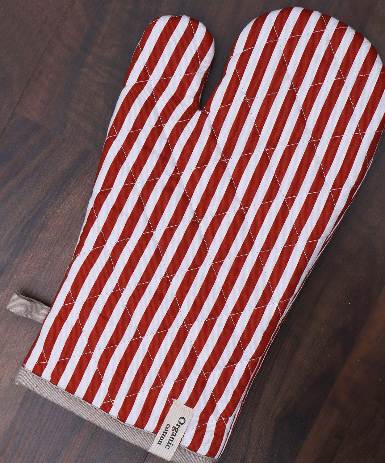 AMOUR INFINI Striped Pot Holders and Oven Mitts Heat Resistant Non Slip Reusable Set of 1 Oven Mitt and 1 Pot Holder Oven Gloves Pot Holder for Cooking (Rust)