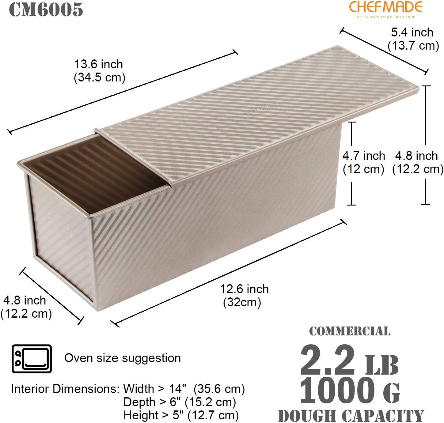 CHEFMADE Loaf Pan with Lid,Commercial Pullman Bread Pan 2.2Lb Dough Capacity,Non-Stick Bakeware Carbon Steel Bread Toast Mold with Cover for Baking Bread (Champagne Gold)