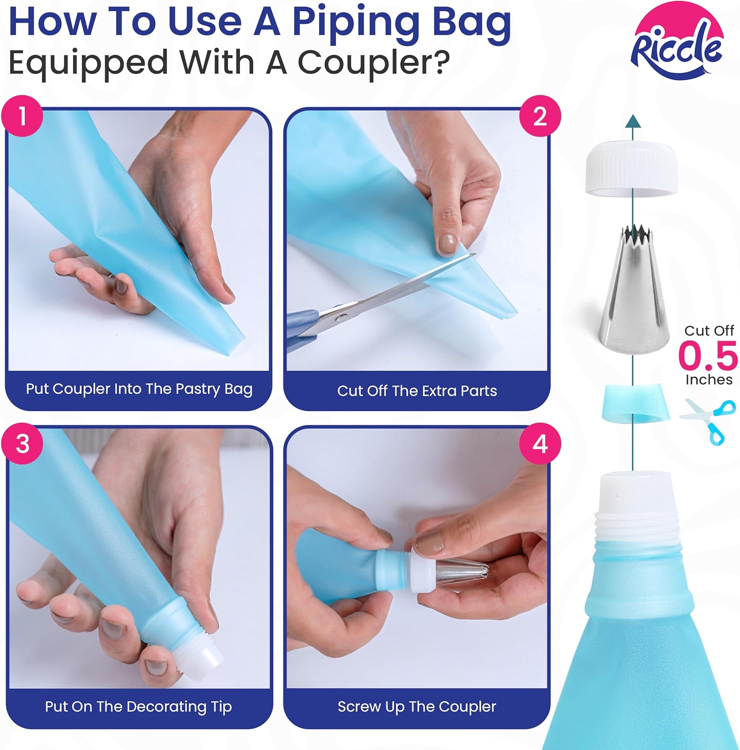 Riccle 94 pcs Cake Decorating Kit with Cake Turntable - Includes 50pcs 16 Inch Disposable + 2 Reusable Piping Bags and Tips Set, 24 Icing Piping Tips, 2 Spatulas, 3 Icing Comb Scraper, 6 Cake Liners