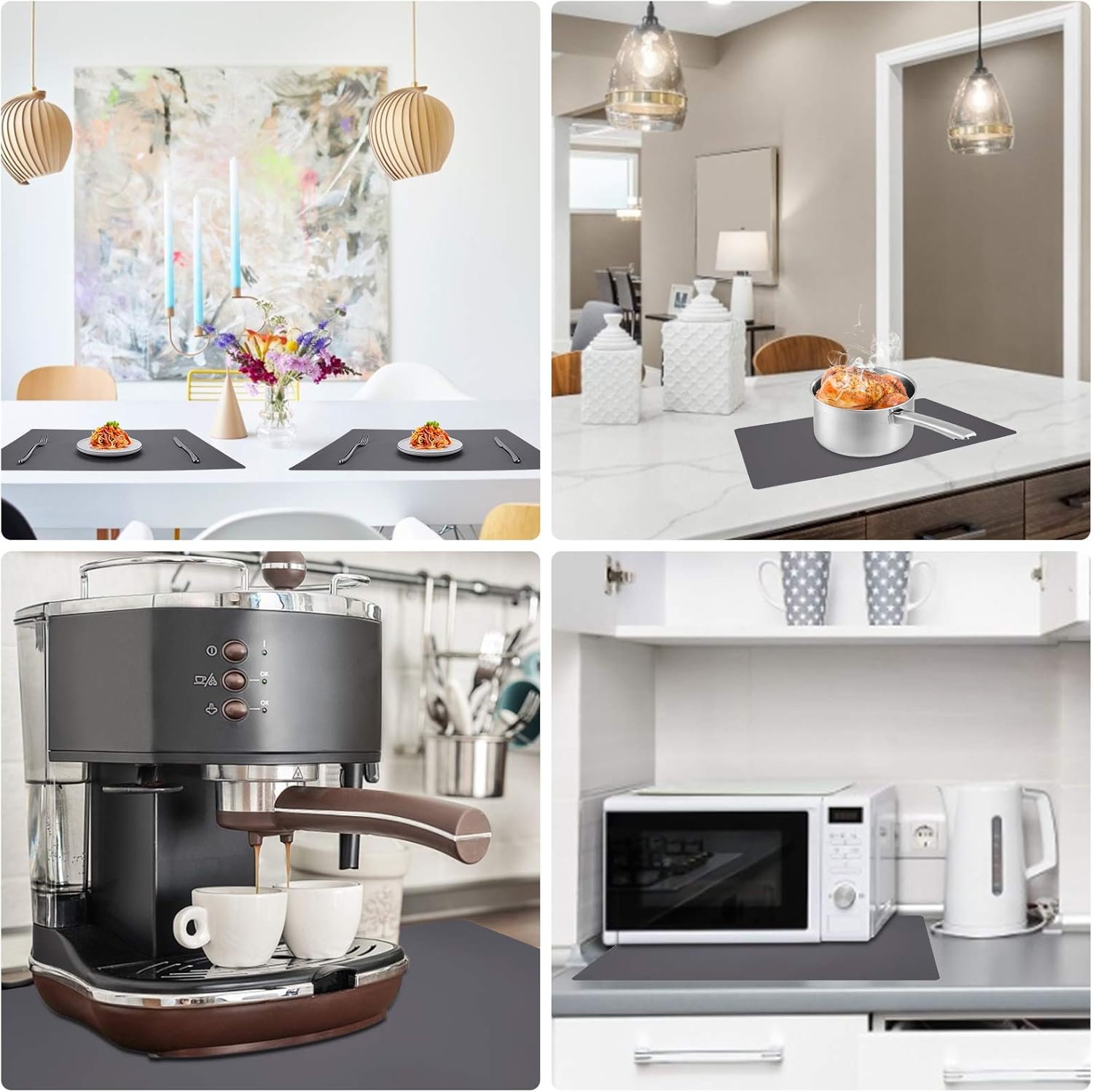 - Size :Sized at 28" x 20"x 0.03"(Length x Width x Thickness), large enough to protect your counter top, it can be placed under the microwave, air fryer, induction stove, toaster oven, coffee maker etc.