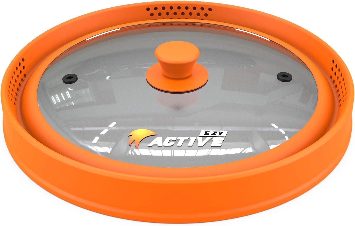 Collapsible Microwave Cover for Food - Silicone and Glass Splatter Guard Lid for 6-12 inch Plates & Bowls, Dishwasher Safe, Heat Resistant, BPA-Free, Orange