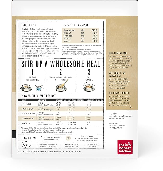 The Honest Kitchen Dehydrated Whole Grain Beef Dog Food, 7 lb Box, 7.00 Pound (Pack of 1)