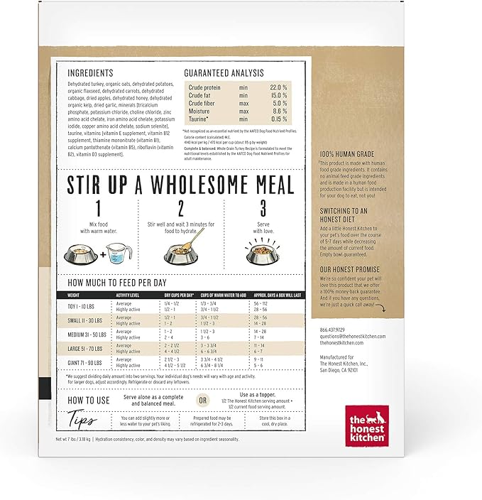 The Honest Kitchen Dehydrated Whole Grain Turkey Dog Food, 7 lb Box