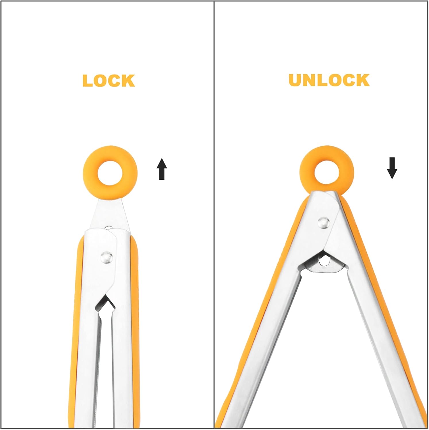 4 Pack Orange Kitchen Tongs, Premium Silicone BPA Free Non-Stick Stainless Steel BBQ Cooking Grilling Locking Food Tongs, 9-Inch & 12-Inch