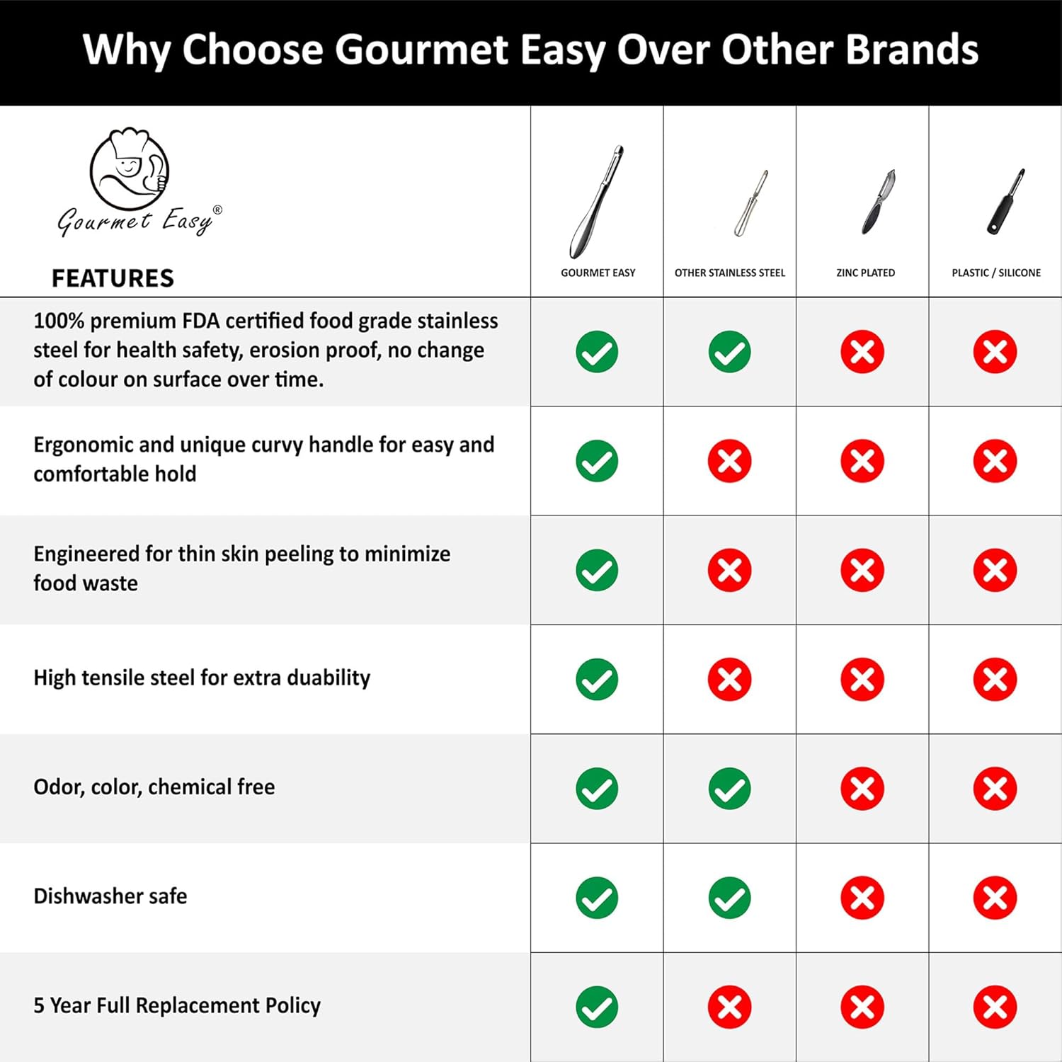 - GOURMET MADE SIMPLE: - At Gourmet Easy, we're dedicated to simplifying gourmet cooking experiences. We believe that creating delicious meals for your loved ones should be a fun journey, not a daunting task. Share the joy of cooking with your loved ones with our Gourmet Easy Peeler!