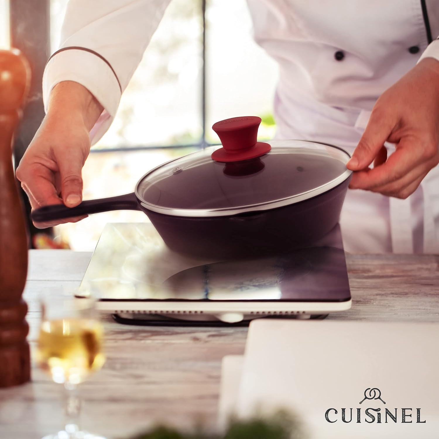 - STEAM VENT HOLE: Cuisinel's professional quality lids – now updated with steam vent holes to prevent liquid from boiling over. Vent holes allow just the right amount of moisture to evaporate easily so your food doesn't saturate in liquid. Vent holes make sure the glass lid doesn’t cloud up – allowing you to easily see cooking progress without removing lid.