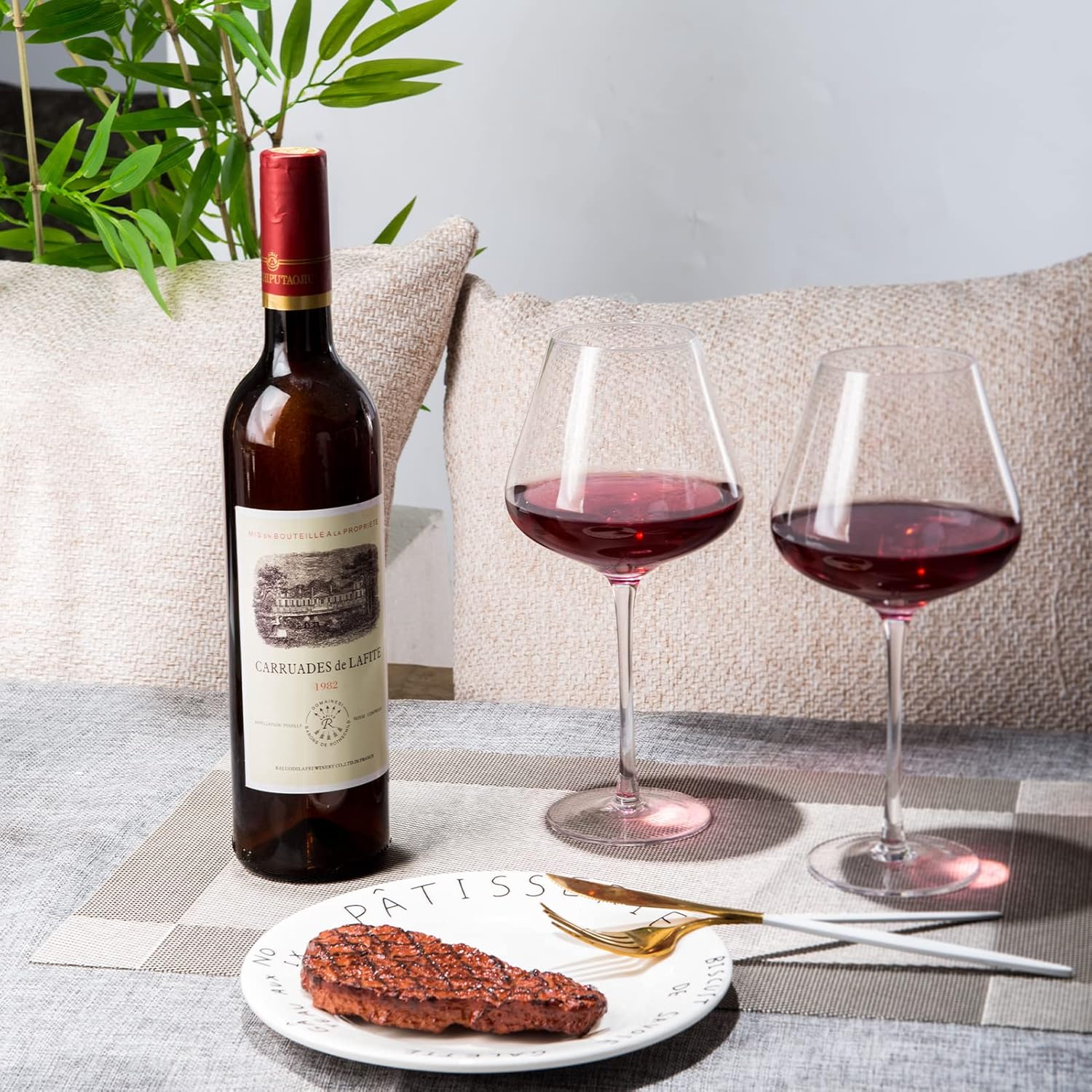 Hand Blown Red Wine Glasses Set of 4 – 23 oz Burgundy Wine Glasses With Long Stem – Large Premium Crystal Wine Glass – Unique Gift for Wedding, Anniversary, Mother’s Day – Clear