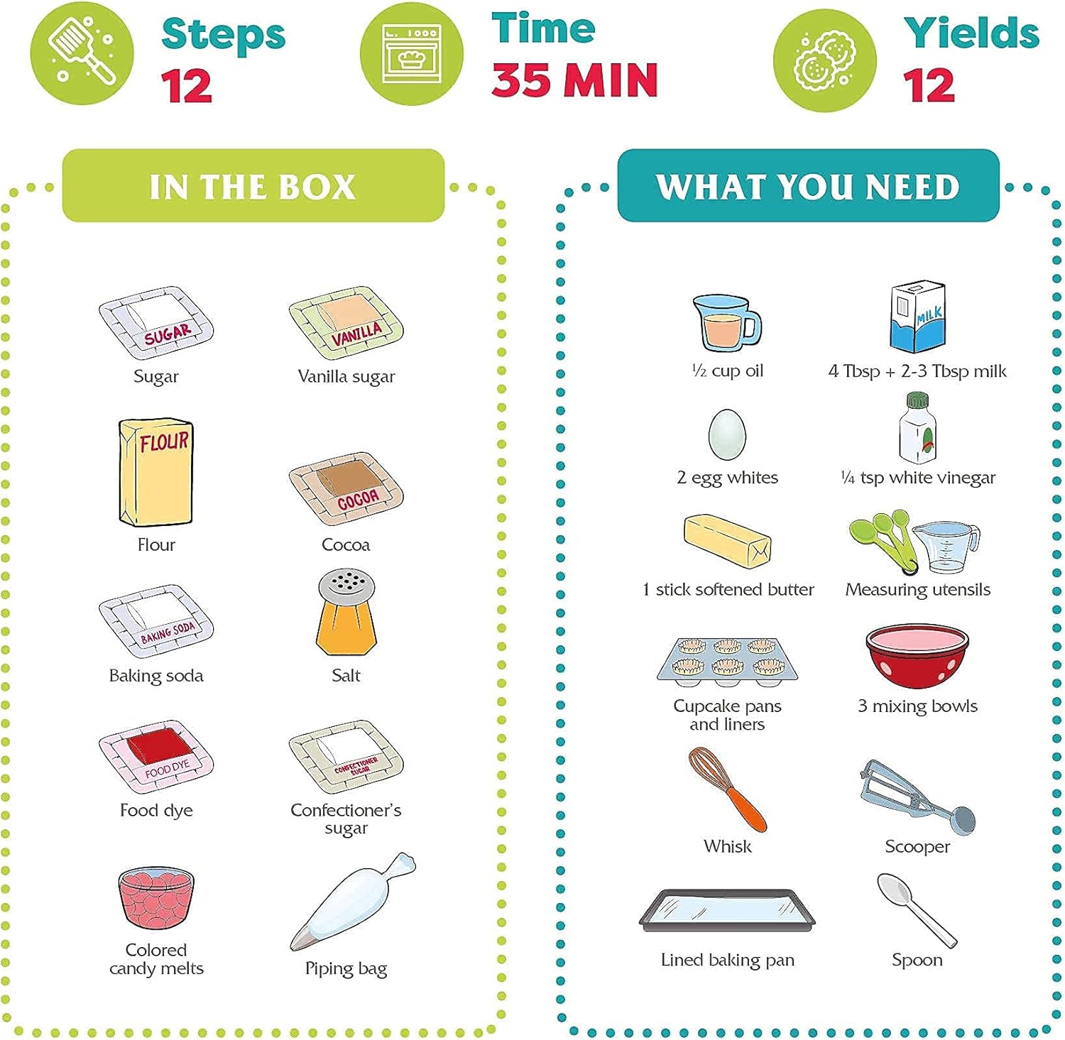 Baketivity Kids Baking Set, Meal Cooking Party Supply Kit for Teens, Real Fun Little Junior Chef Essential Kitchen Lessons, Includes Pre-Measured Ingredients (Baketivity Kit, Red Velvet)