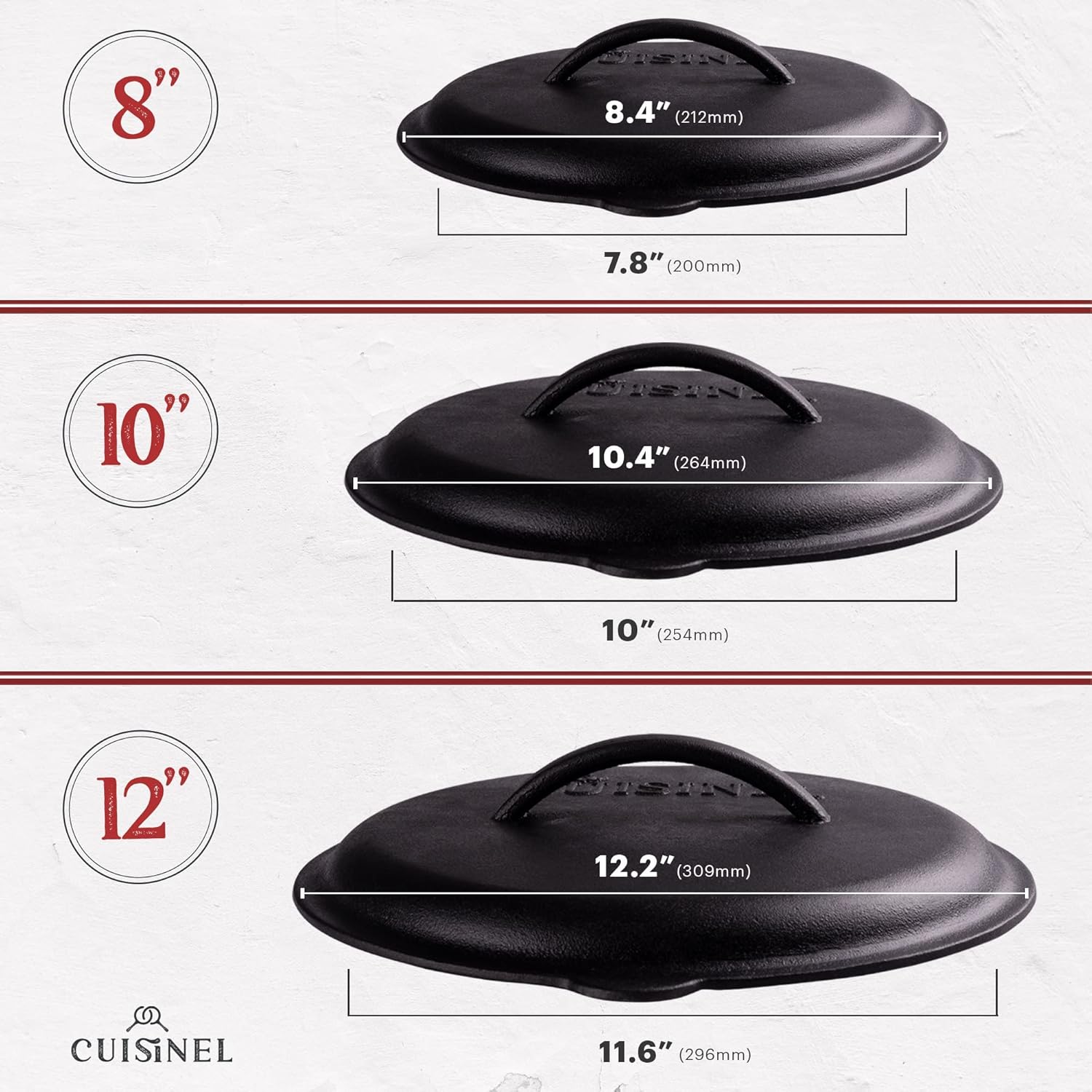 - NOW WITH A HEAVY DUTY CAST IRON BRAISER LID – Cuisinel once again revolutionizes the culinary world by introducing this covered braiser style dual handle skillet. With our meticulously placed drip-points in the lid - along with even moisture and heat distribution - you can now take your cast iron wizardry to the next level by effectively turning your pan into a casserole or braiser with perfect cooking results. Pan and lid can withstand any temperatures without fear of shattering or cracking.