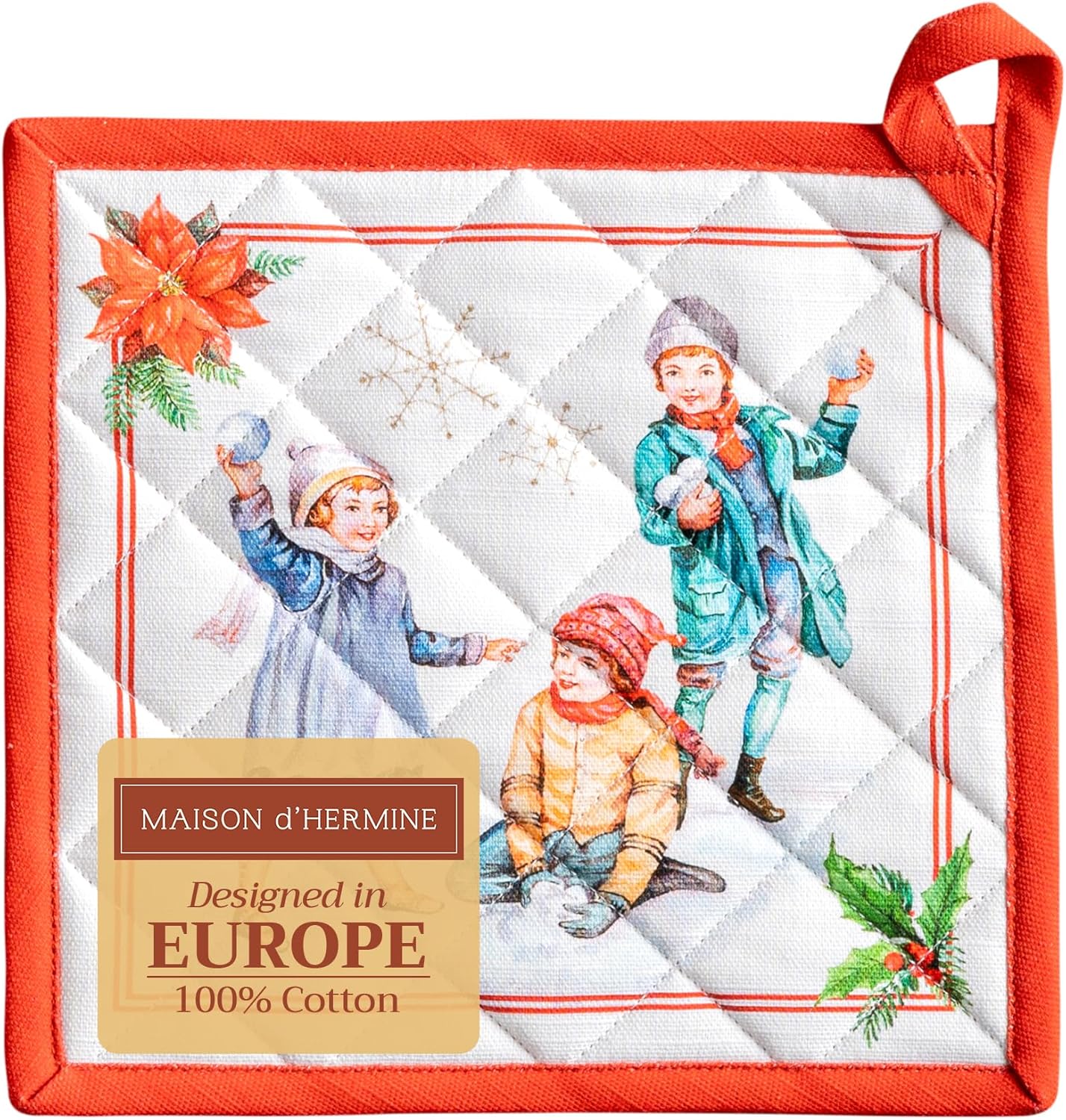 Maison d' Hermine Pot Holders 100% Cotton Heat Resistant Potholders 8" x 8" Hot Pads with Loop BBQ, Cooking, Baking, Grilling, Kitchen, Handling Hot Pans (Pack of 1, Chromo)