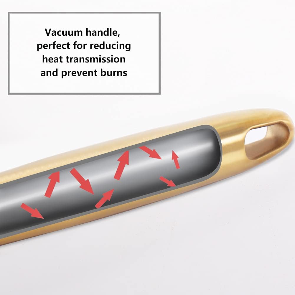 - Length: 13.7 Inches, suitable for most cooking utensils. Vacuum ergonomic round handle for easily holding, reducing heat transfer, not easy to burn your hands.