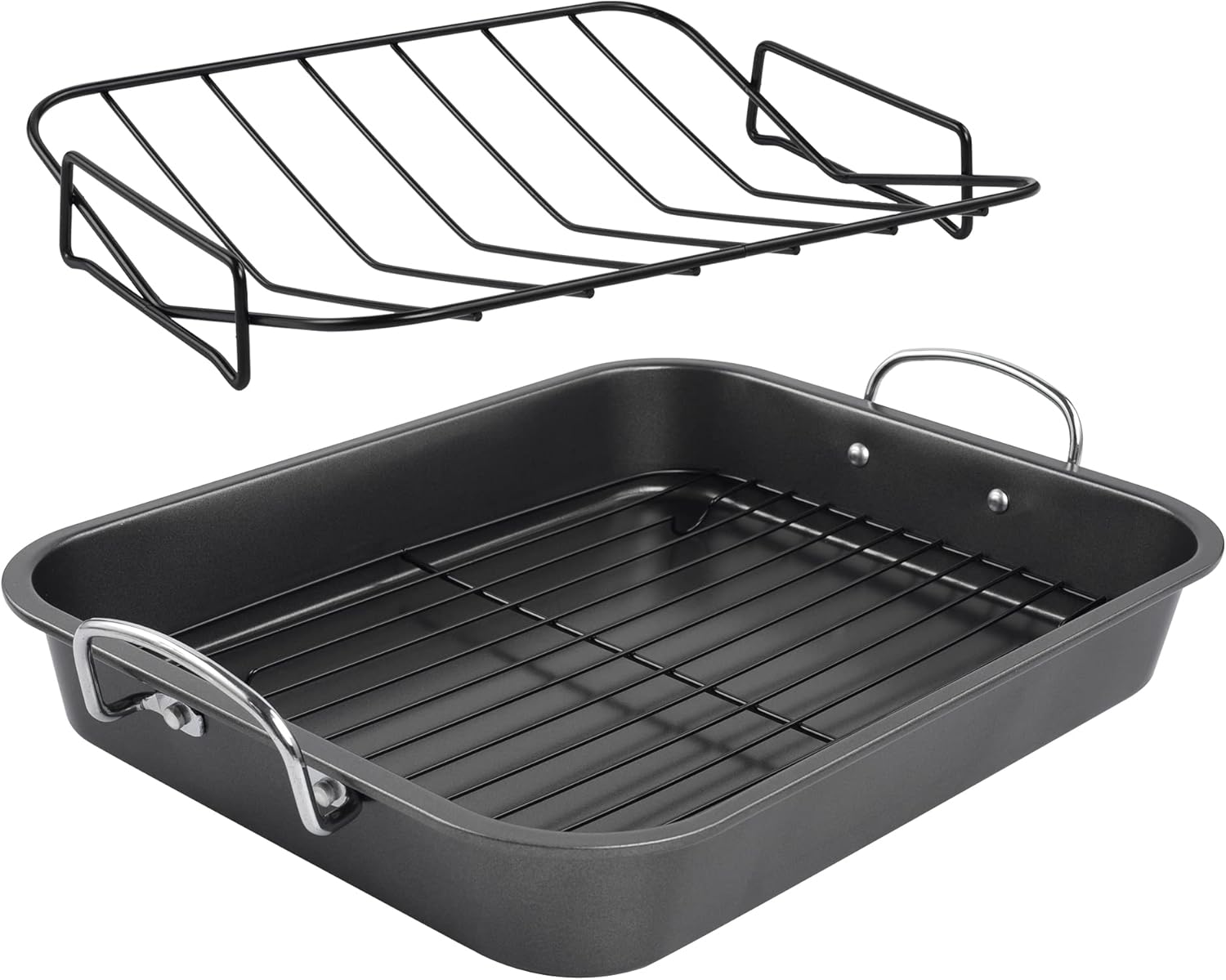 - INCLUDED COMPONENTS: 15.8" X 12" X 2.3" Roaster, Baking Rack