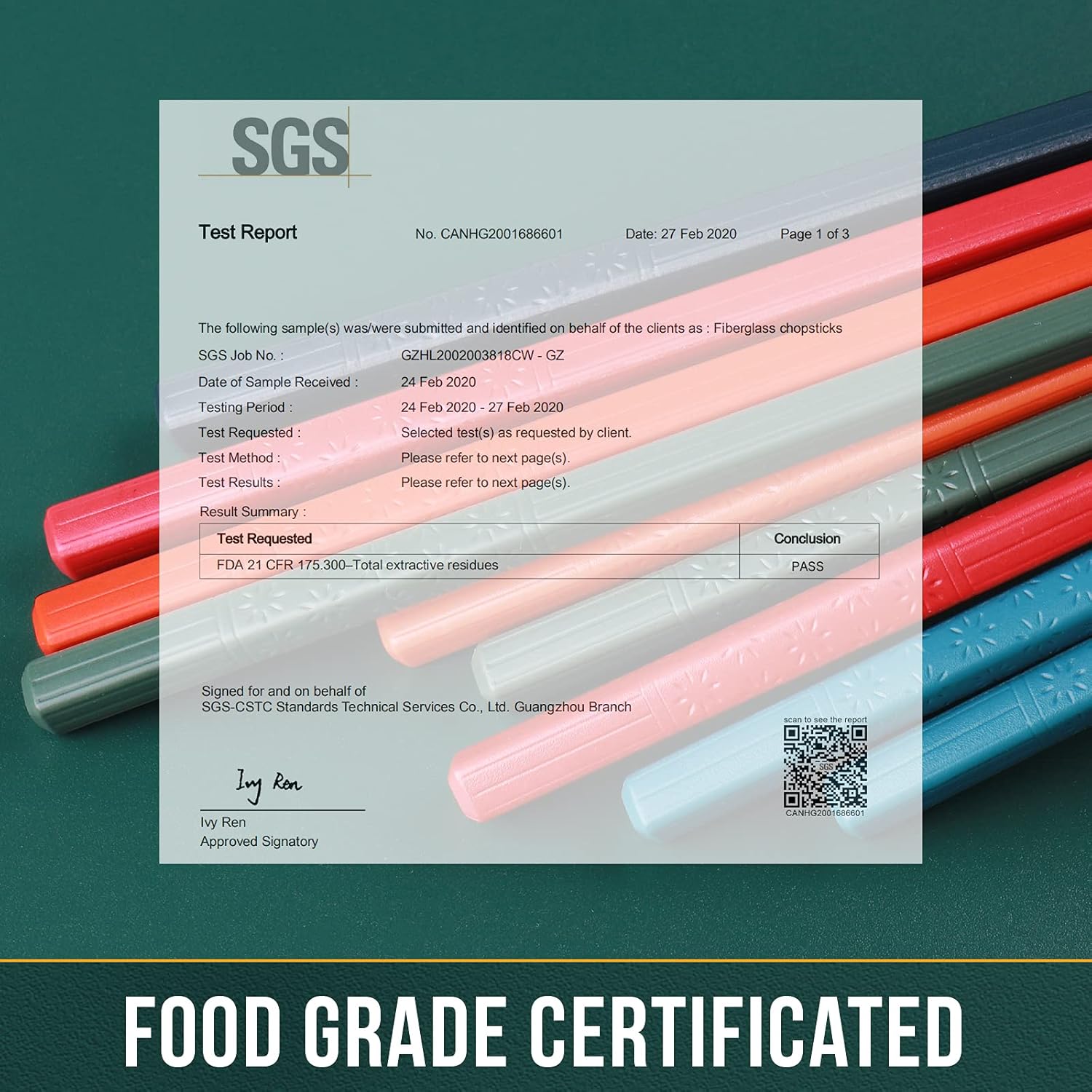- 【Premium Food Grade Material】Made of high-quality food grade fiberglass material and exquisite craftsmanship, these chopsticks are no peculiar smell, no paint, no wax, BPA free, have excellent hardness and toughness, which can be used with confidence.
