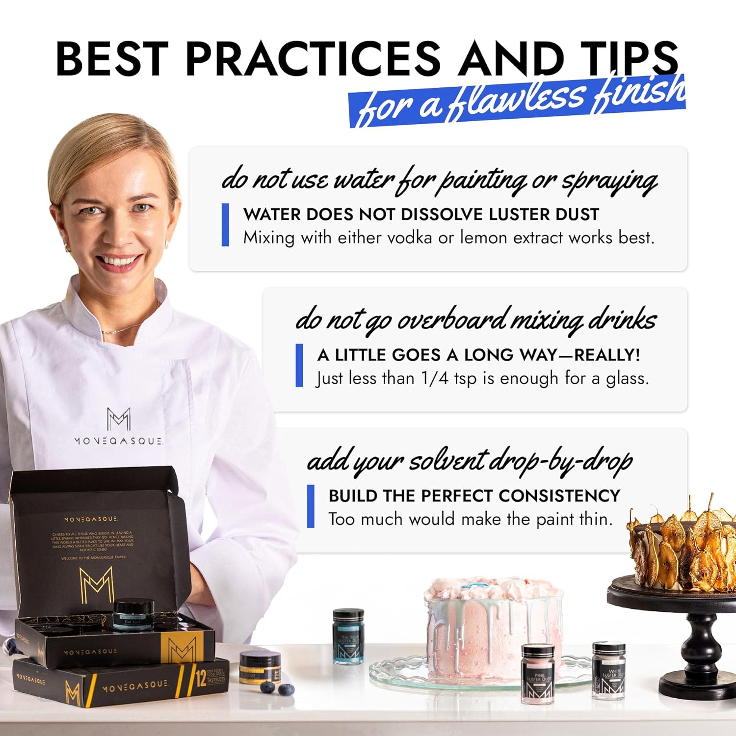 - HIGH-QUALITY INGREDIENTS: Crafted with 100% food-grade ingredients, our luster dust is tasteless, vegan, and allergen-free. Perfect for those with dietary restrictions, it's safe for children and ensures a guilt-free, delightful decoration for all your culinary creations.