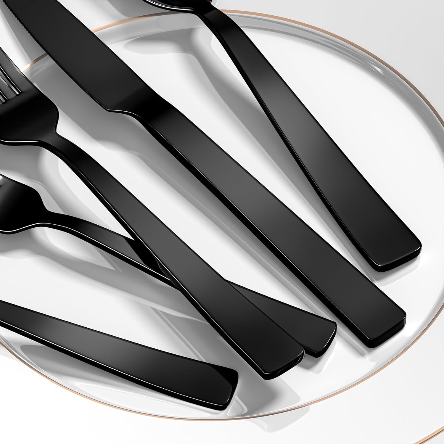 - BLACK FLATWARE SET FOR 8: 40-piece set of stainless steel flatware for everyday use or casual & special occasion. This silverware set includes 8 dinner spoons, 8 dinner forks, 8 dinner knives, 8 salad dessert forks, 8 teaspoons. It would be a nice set of tableware to serves guests and family members.