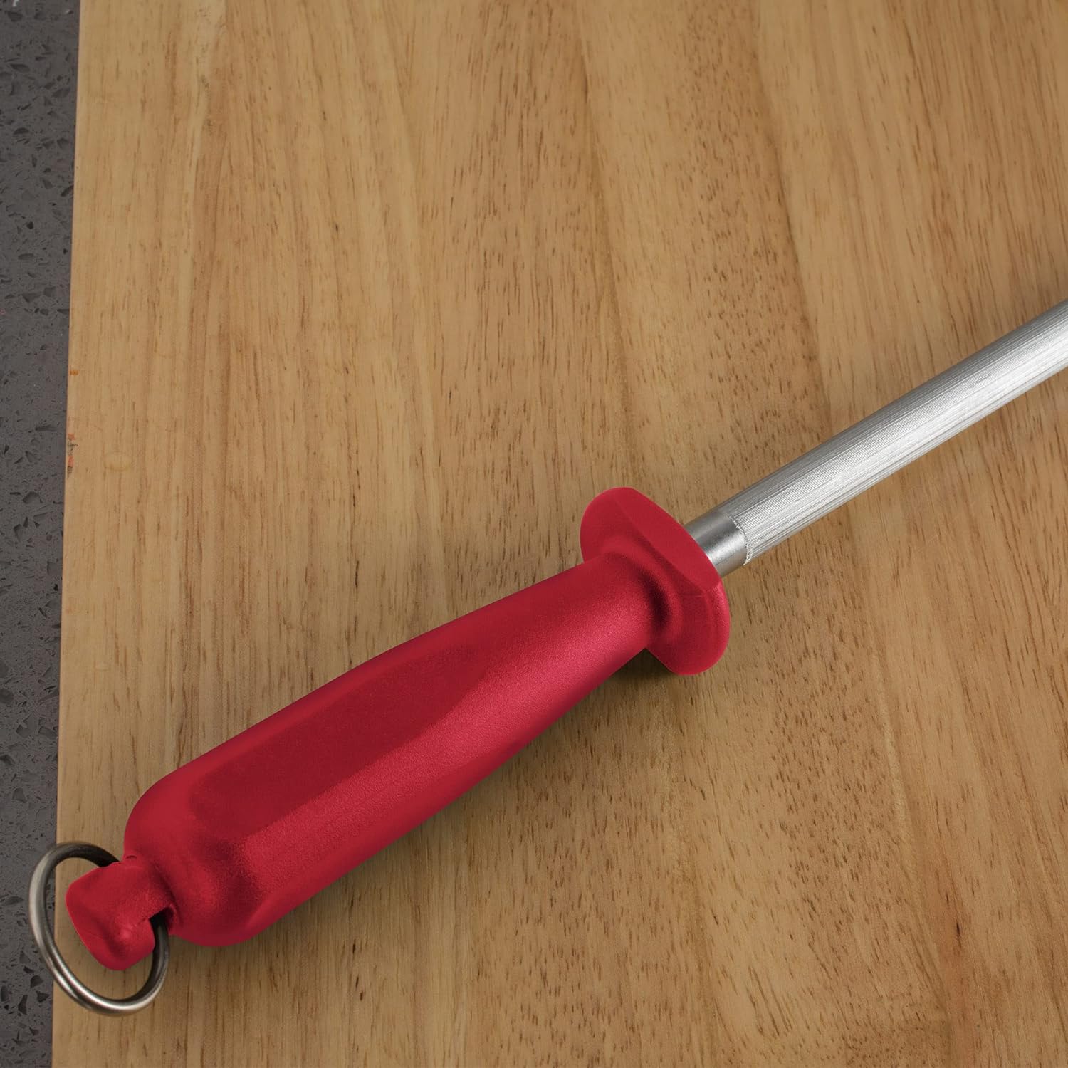 10 Inch Sharpening Steel, Professional Carbon Steel Knife Sharpener, Fresh Red