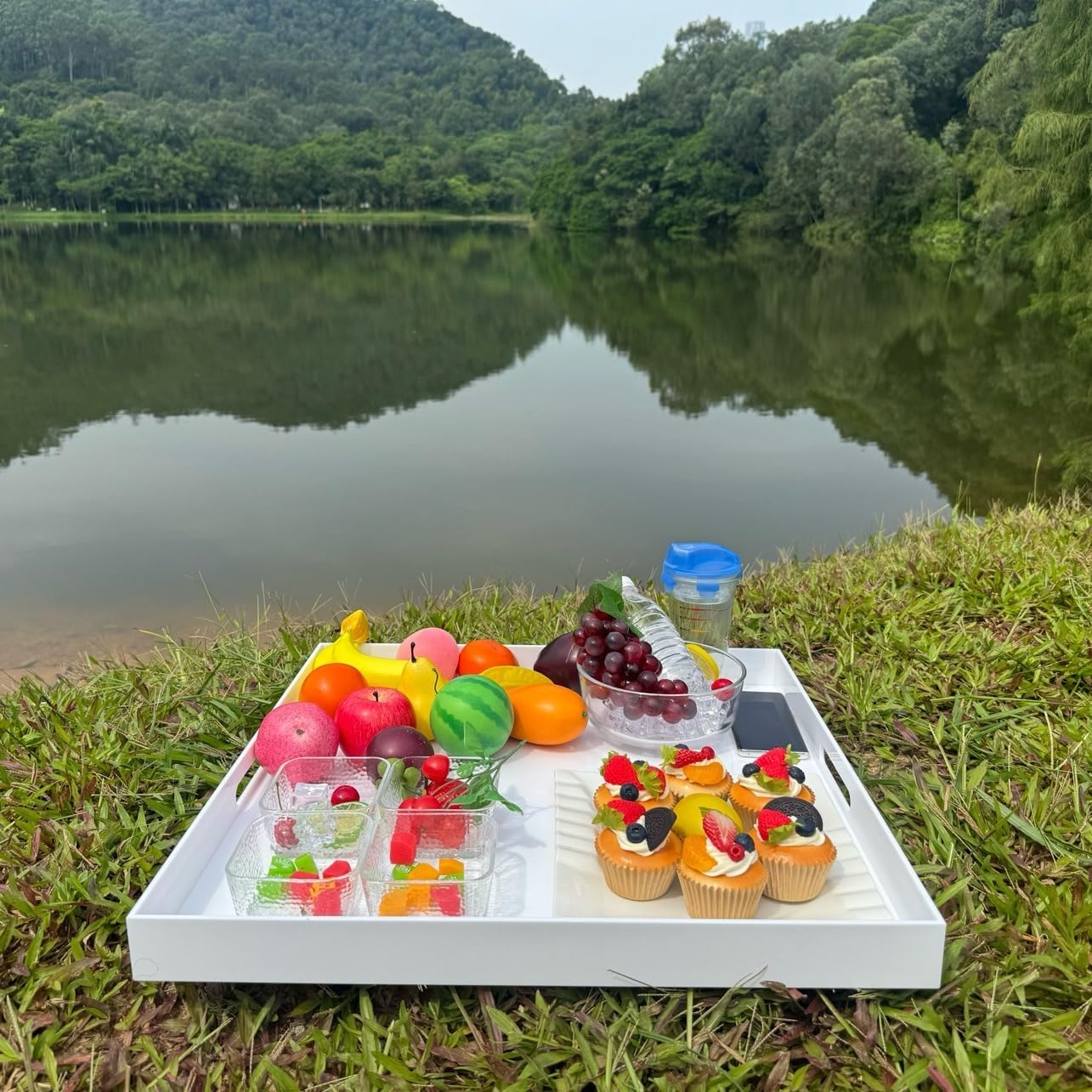 - Multifunctional: Serving tray for serving breakfast, appetizers, coffee, drinks, desserts, snacks, fruit, cheese, food; Decorative organizer tray for cosmetics, jewelry, remote, glasses, ornaments, magazines, Tray can be put on an ottoman, bed, coffee table and couch, It’s elegant to be put on any tabletop or countertop as an accessory