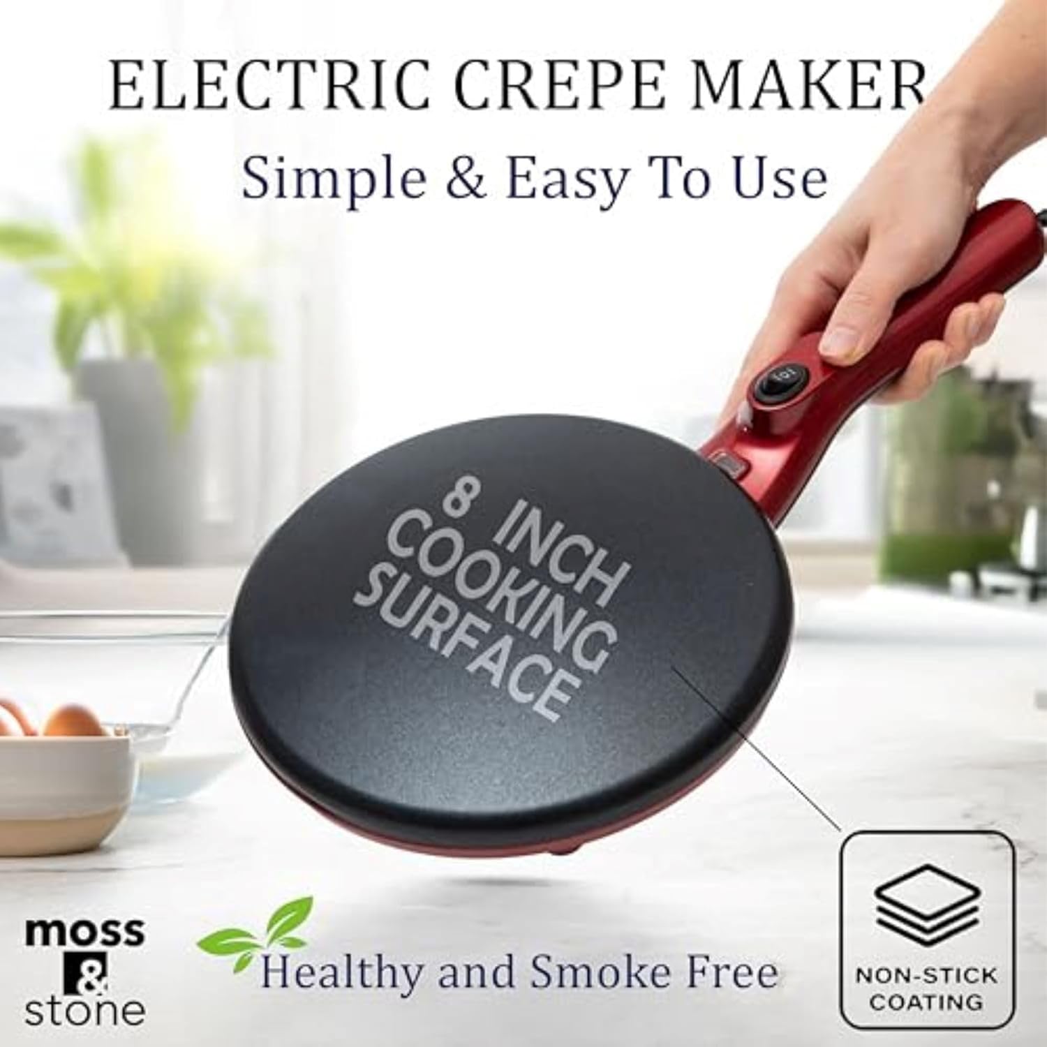 Moss & Stone Electric Crepe Maker 8 Inch, Portable Crepe Maker & Hot Plate Cooktop On/Off Switch, Nonstick Coating, Dual Temperature Setting, Easy To Use For Pancakes, Blintz, Chapati