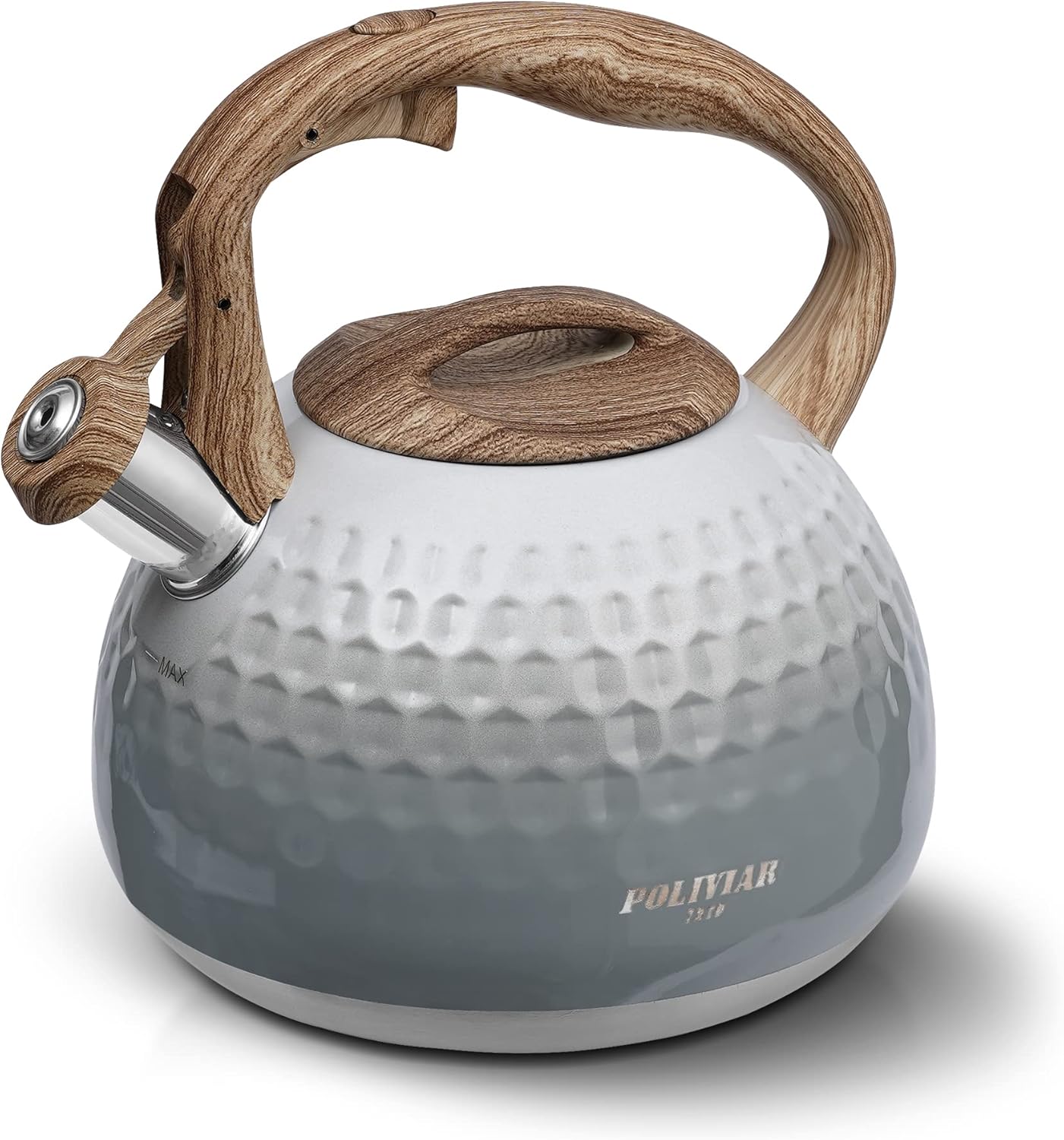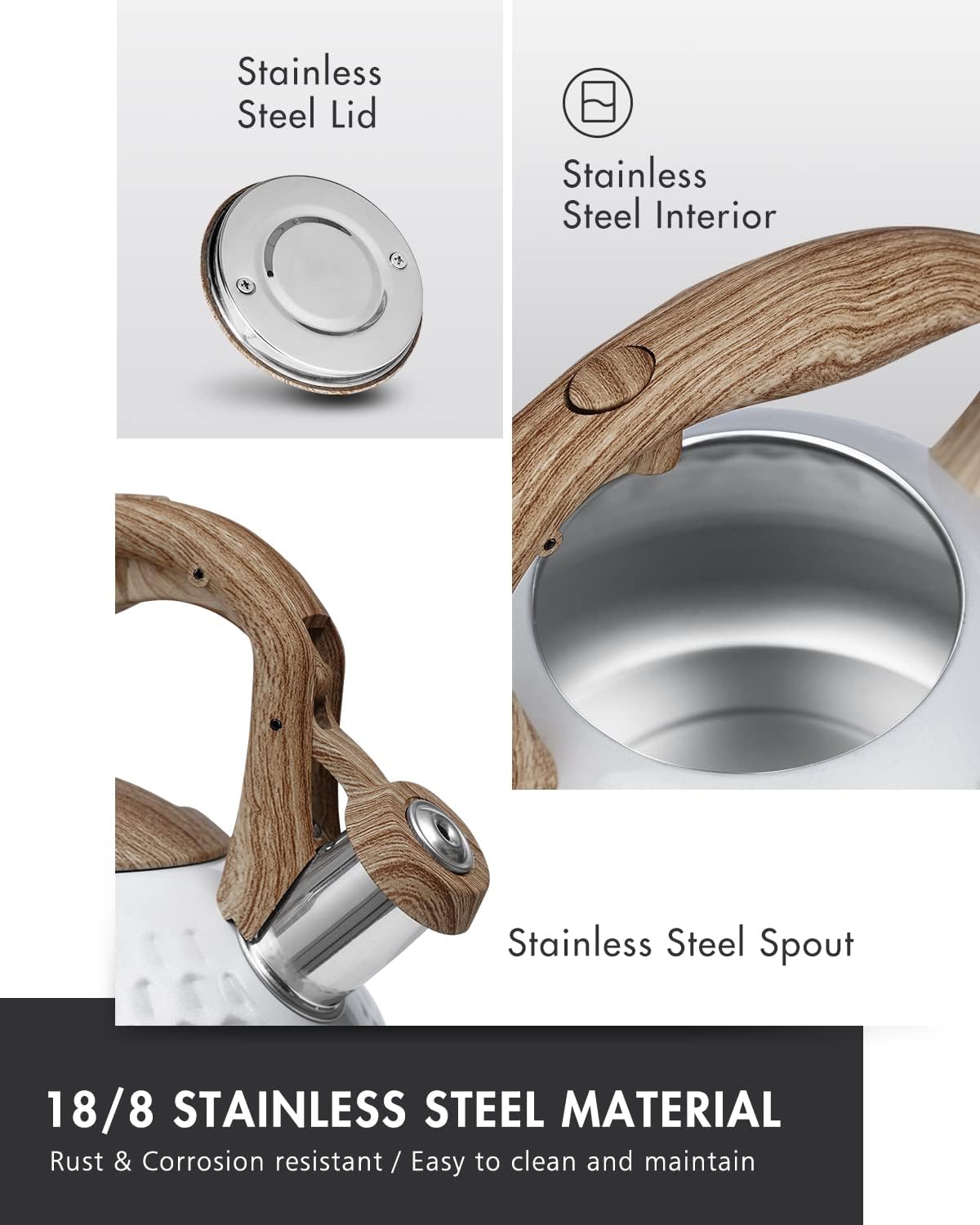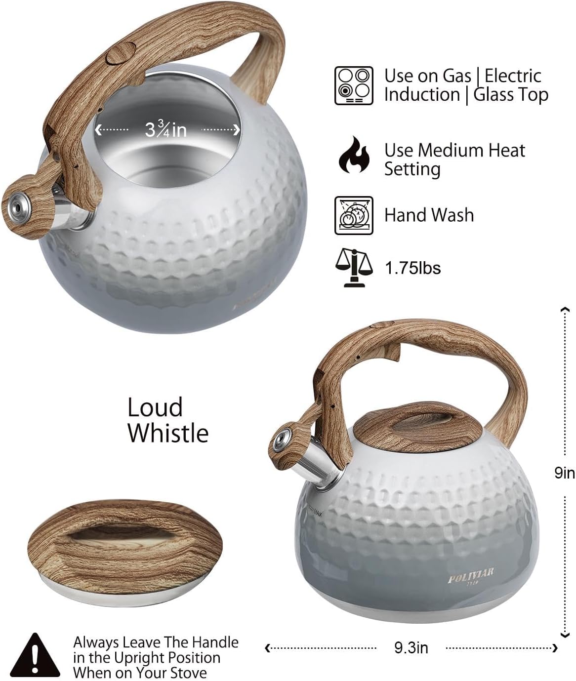 POLIVIAR Tea Kettle, Antique White Stovetop Tea Kettle 2.7 Quart, Audible Whistling Teapot, Food Grade Stainless Steel for Anti-Rust, Anti Hot Handle, Suitable for All Heat Sources (JX2020-YH30)