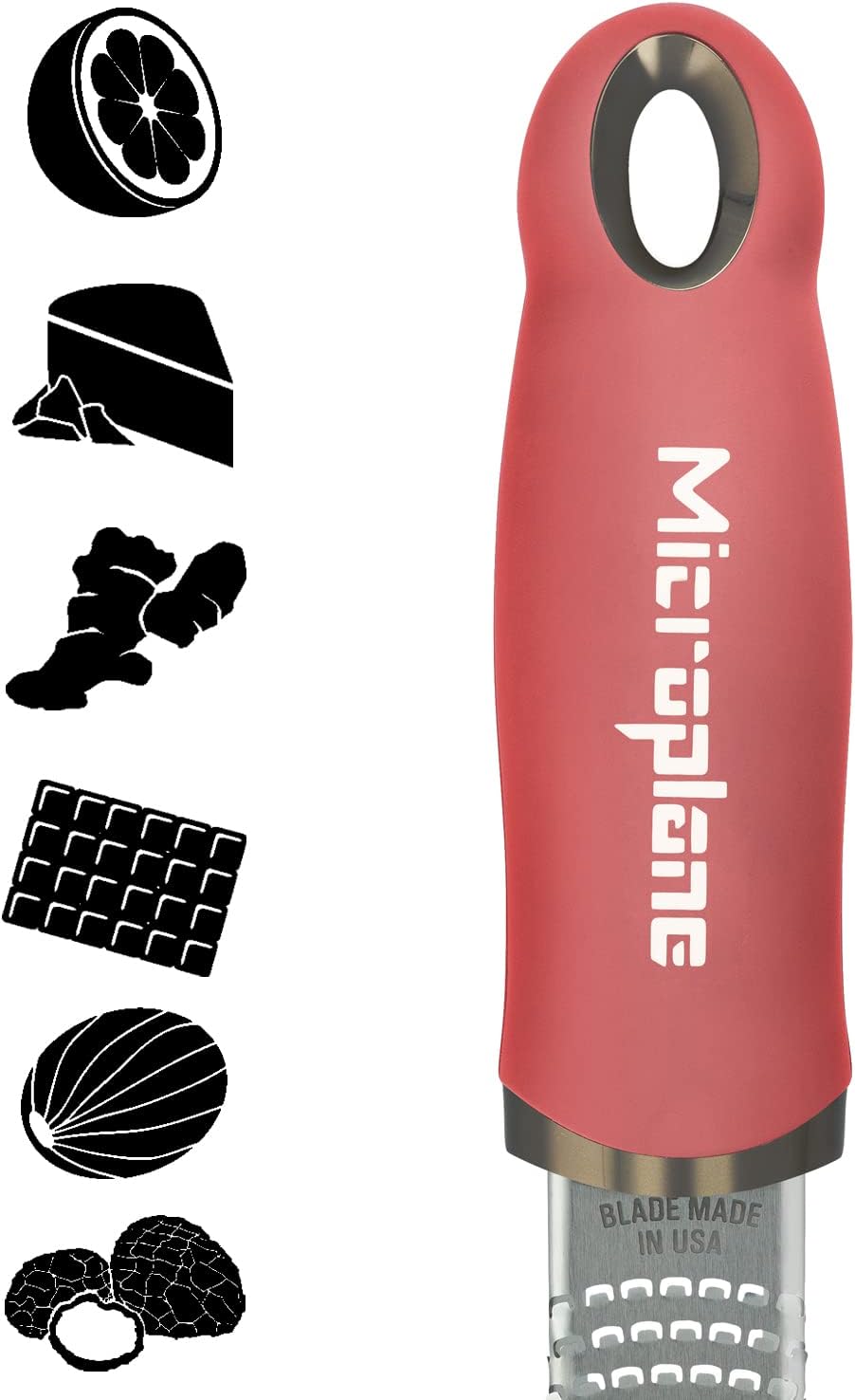 - ERGONOMIC SOFT-TOUCH HANDLE : for maximum comfort and anti-scratch plastic feet for more stability when grating. The Microplane classic is appreciated by professional and hobby chefs, for its precise and effortless grating.