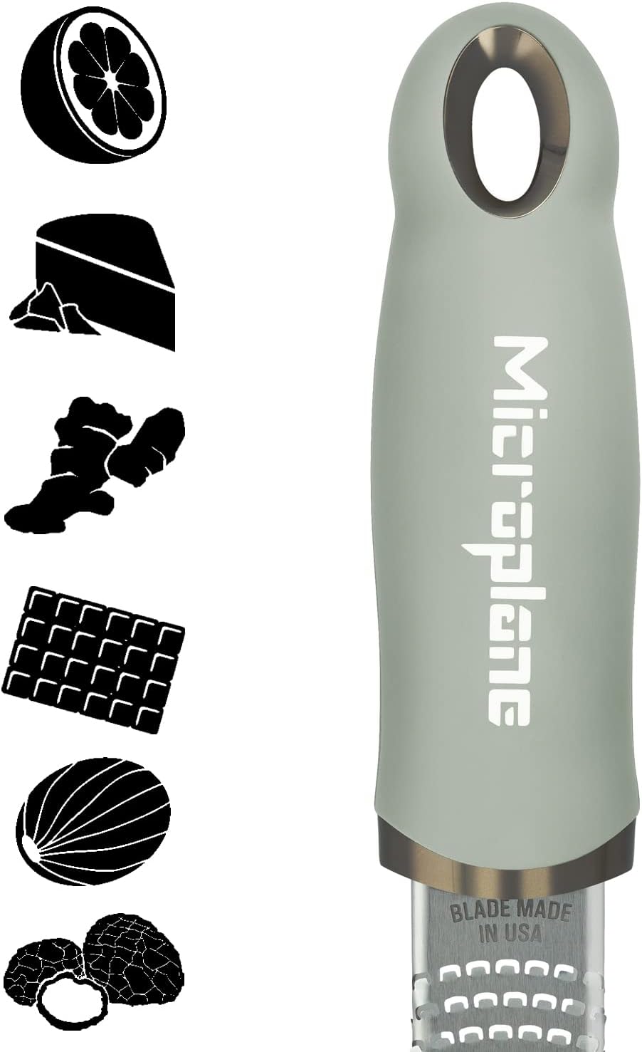 - ERGONOMIC SOFT-TOUCH HANDLE : for maximum comfort and anti-scratch plastic feet for more stability when grating. The Microplane classic is appreciated by professional and hobby chefs, for its precise and effortless grating.