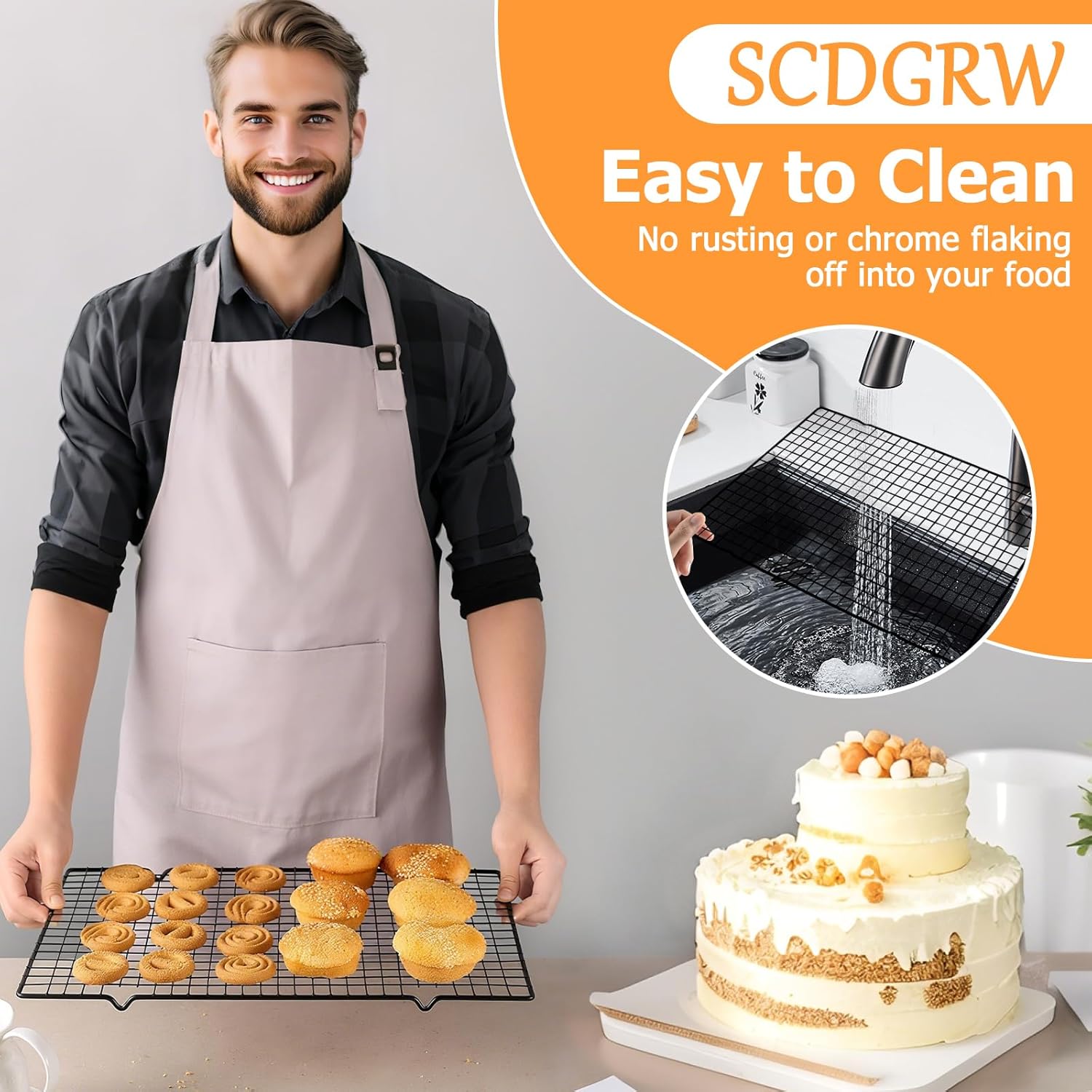 - 【SAFE & EASY TO CLEAN】The baking racks for cooling and cooking is completely dishwasher safe and will not wear or fade in it,just soak immediately after use and use a vegetable brush to get crumbs and bits out of the cross sections, then cleaning is simply a piece of cake