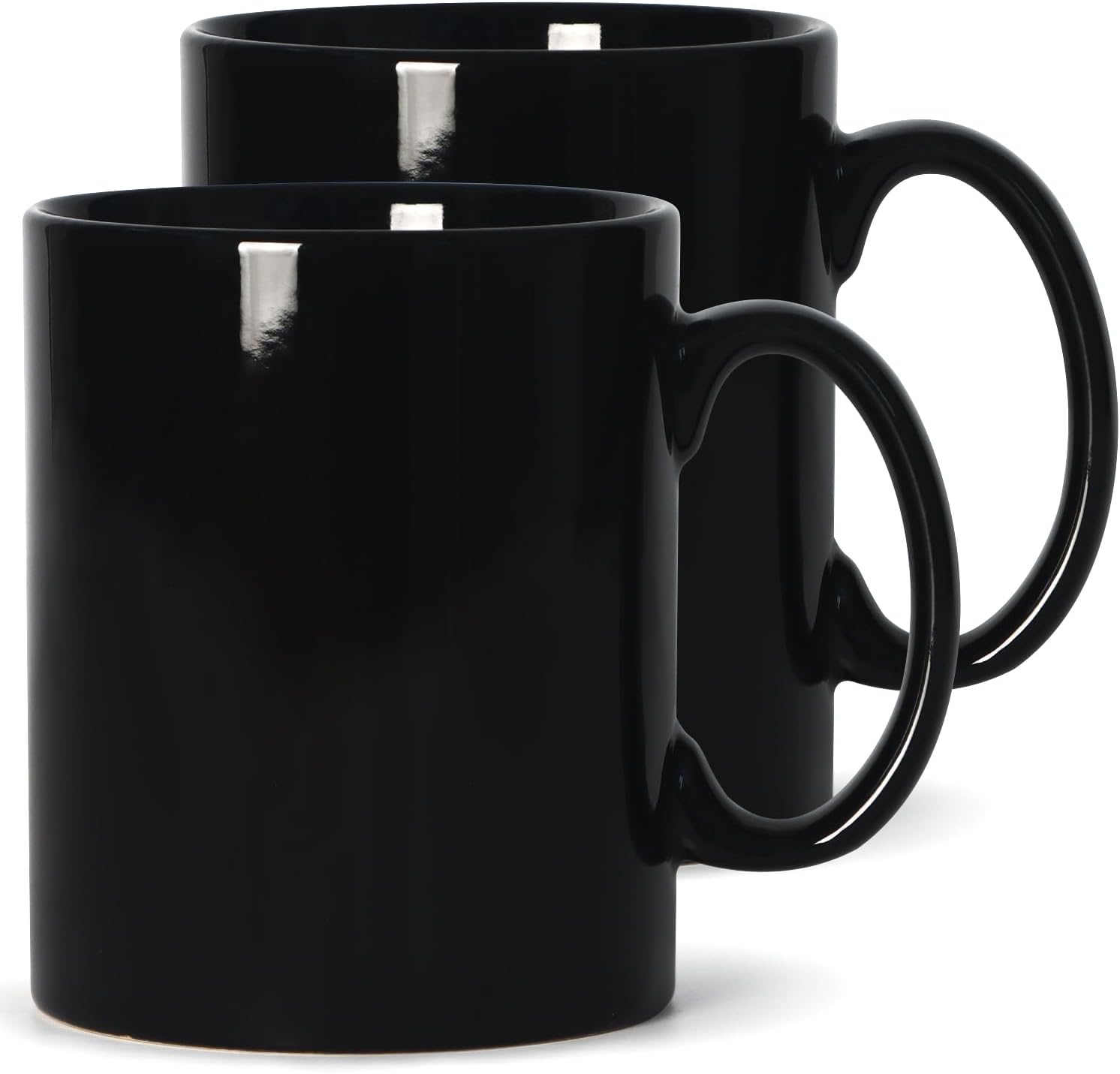 Large Coffee Mugs, 22 OZ(650ml) Extra Coffee Mug Set of 2, Smooth Ceramic Boss Cups, Big Capacity and Large Handle, for Dad Men, Black
